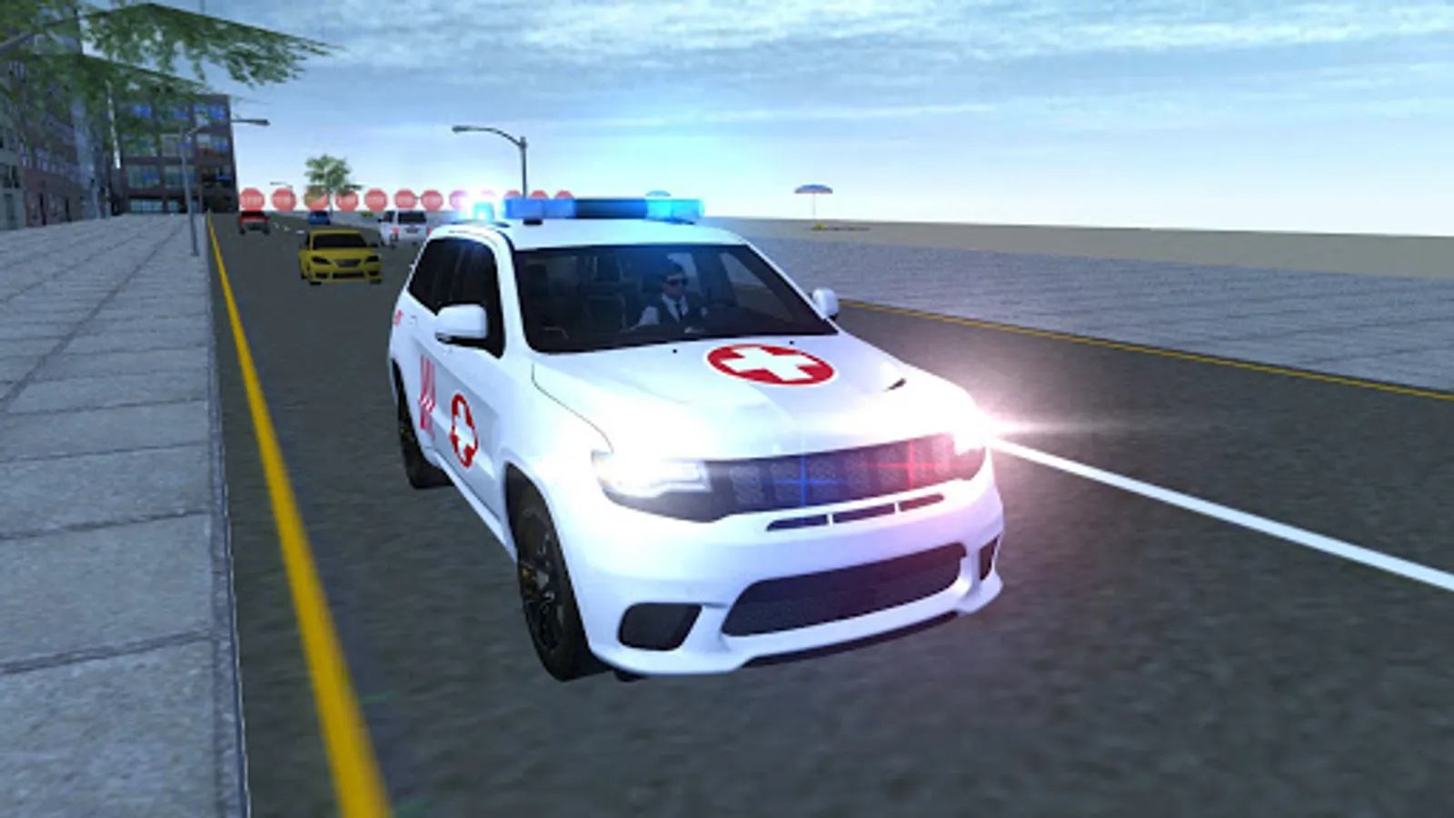You can control your ambulance vehicle with the steering wheel or direction keys. Don't forget to turn on your sirens while going on missions.