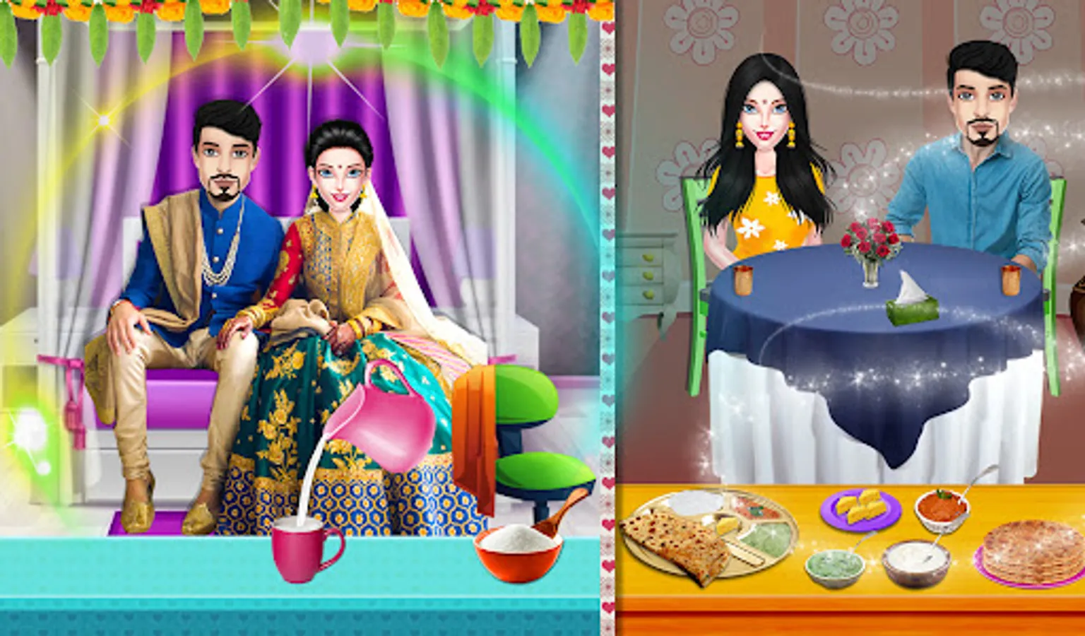 This is the time of the first night after the Indian wedding, which is called “Suhagrat”. While they feel comfortable, they joke with them. On the first morning, the bride was assigned the main role in the groom's house, where she not only prepares food for family members, but also serves it personally. They are ready to organize a honeymoon away from family and friends. So, you have to choose an amazing wedding dress and other items for your dream trip. They have already arrived at the airport. So help the wonderful couple to finish all the airport paperwork. Don't forget to check your passport in this game at the airport. This doubles game is a lot of fun. They will learn how much they like to enjoy the beautiful sunsets on the beach. Enjoy swimming with them. The couple felt a little hungry. Serve steamed food in your favorite delicious juice.