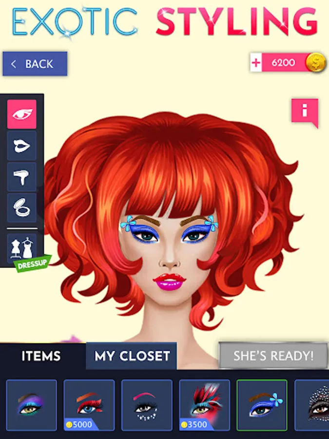 Become a superstar beauty studio stylist and make your model look fabulous with the latest fashion. Become an expert designer and makeup stylist. Try unique fantasy styles and makeup, jewelry collections, accessories, and hairstyles. The models need the perfect makeup for the occasion! Your girls will glow and you can share your designer makeup abilities with your friends