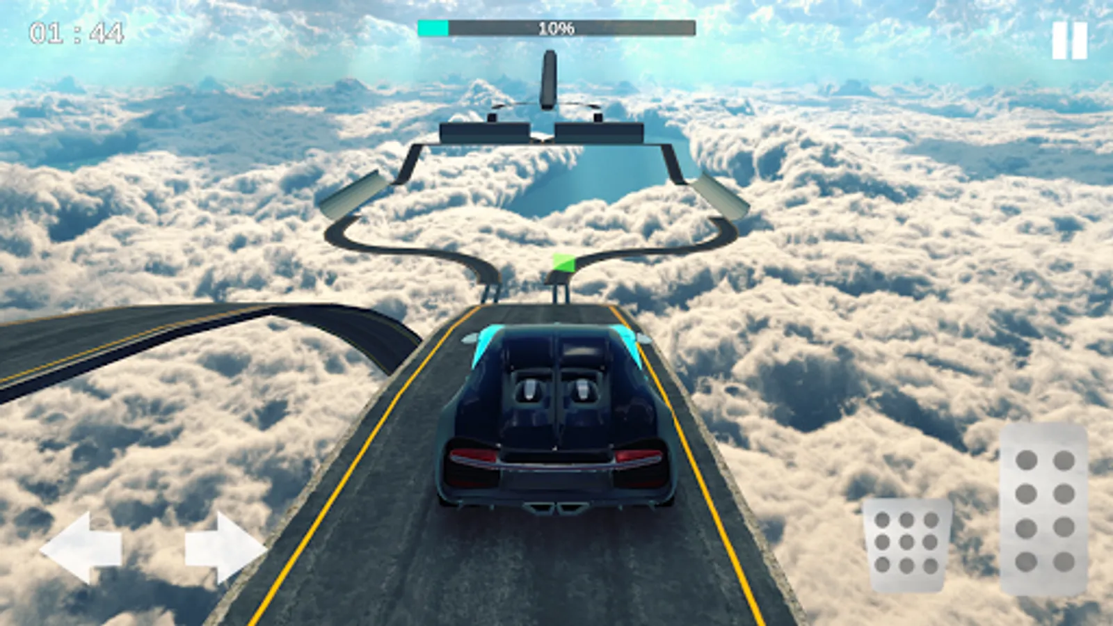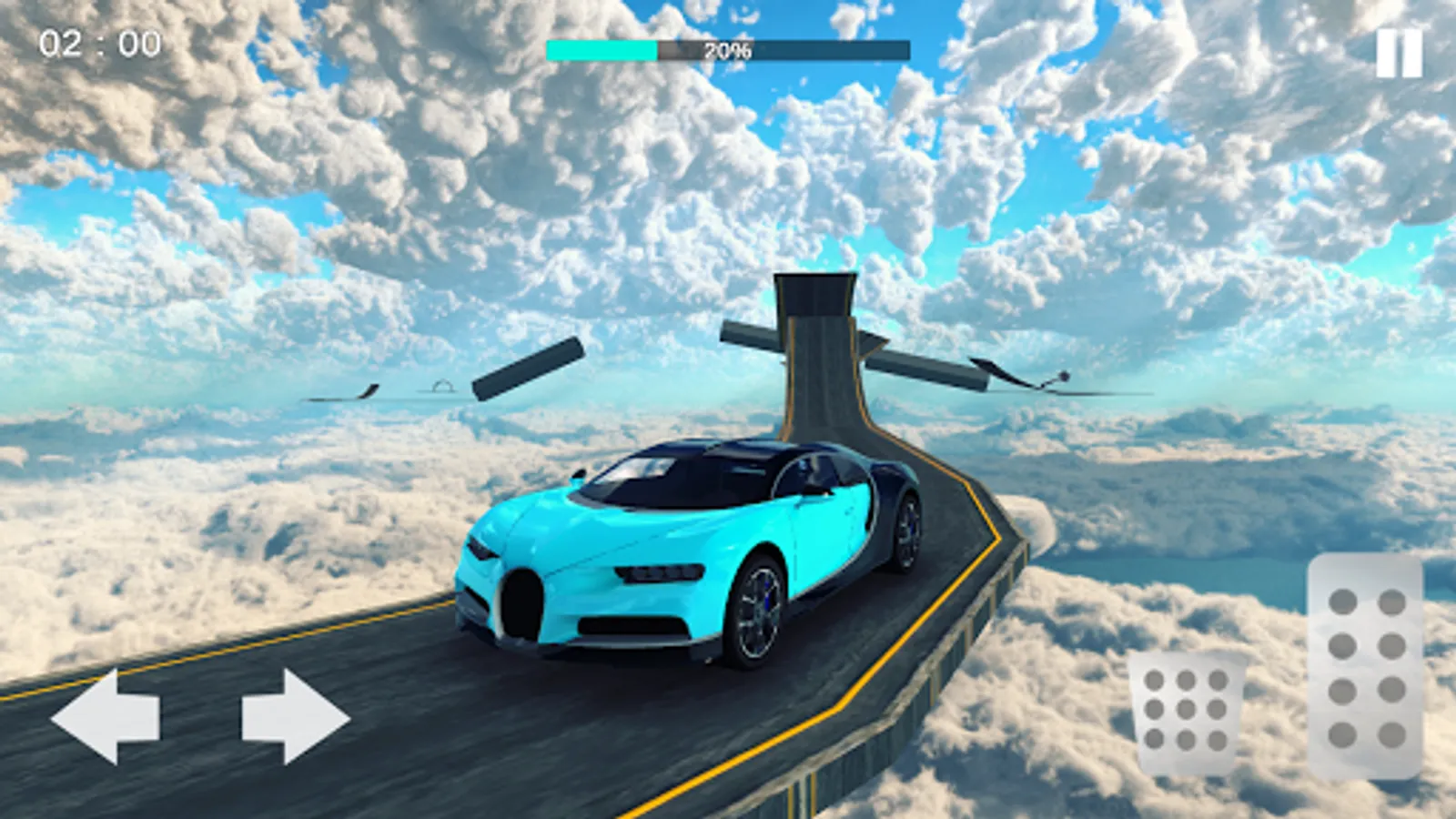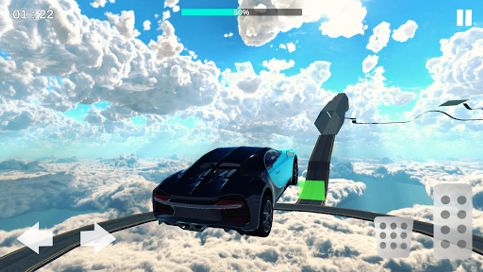 The stunt tracks will put your driving skills to the test! This car game is very intense and is not recommended for beginners! With practice you will master all the jumps! The game is set in the clouds on stunt roads.