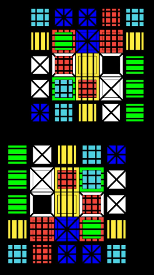 Two players on one device play the Classic game of Rubik's race by sliding tiles around. Move the center colors to match the border colors.