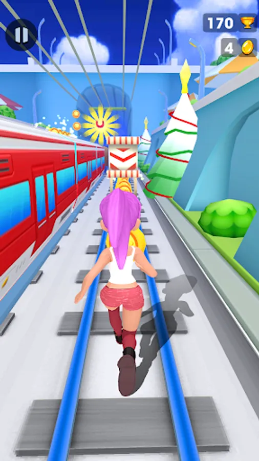 Help Princess to dodge the approaching trains and escape from the angry policeman.