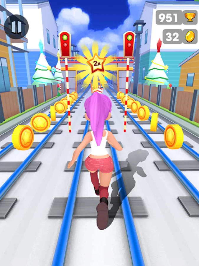 You can control the game with one finger The gameplay is very easy. when you swipe left or right, you can change the running path Also Drag up to make the princess jump over obstacles on the road, swiping down the princess can slide on the ground when there are high obstacles. for more protection, you can use the skateboard activate by double tapping to use the hoverboard from crashing. The game features several auxiliary characters for the princess, including subway Santa Claus and Santa Kid Also, you can use the power-ups to facilitate the game more when the levels are difficult.