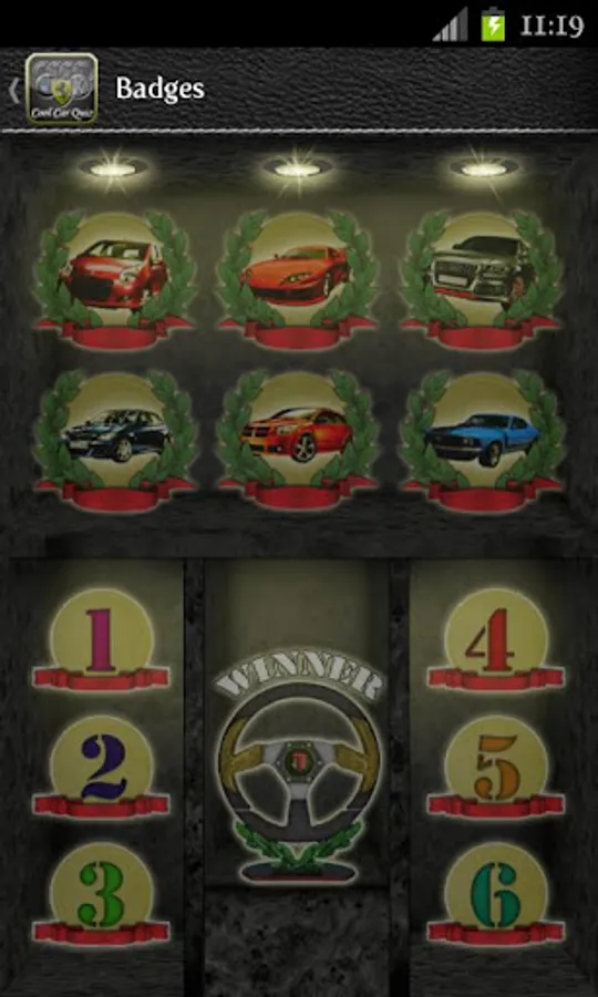 Try to guess all the cars and check all the trophies in the badges gallery.