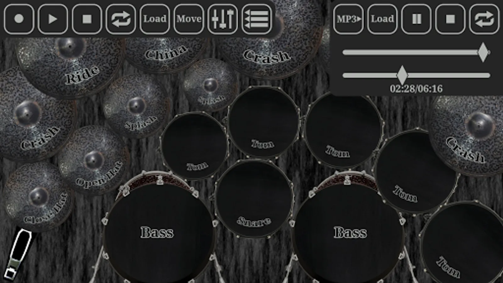 - The function of playing audio files from your device directly in this app. Now you can play the drums to your favorite music!