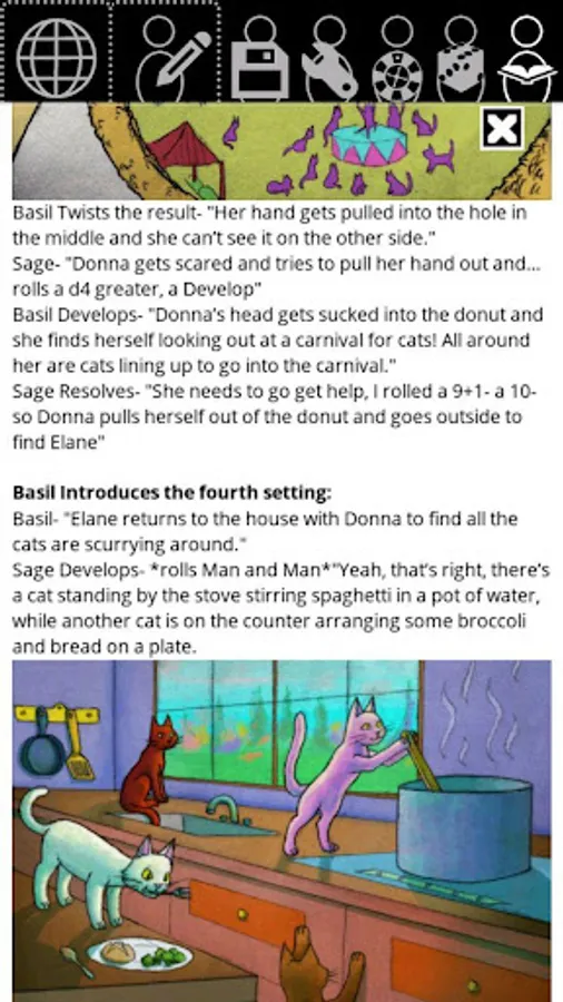 Are you are the mood for a sprawling adventure, a small-town mystery, or a classic dungeon crawl? The Blazing Tales storytelling engine handles anything you can imagine. Play with a group as a role playing game or use it as a tool to write your own stories!