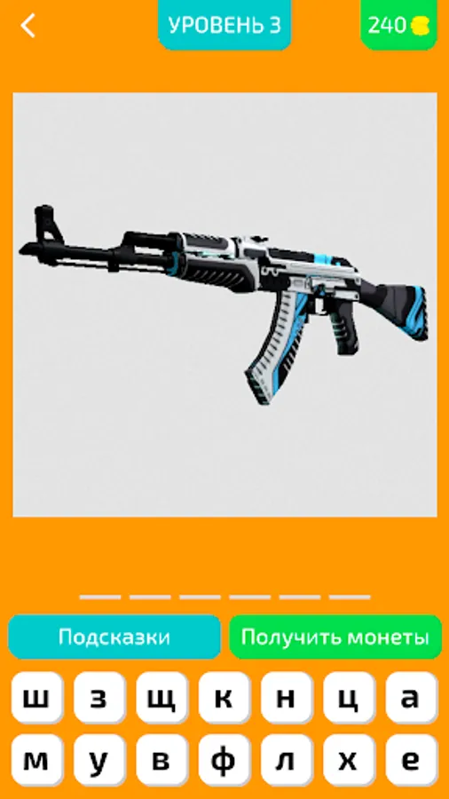 Guess the Skin CS:GO is a quiz game in which you have to guess skins for weapons from the popular game CS:GO. Try to recognize all the most famous and popular weapon designs!