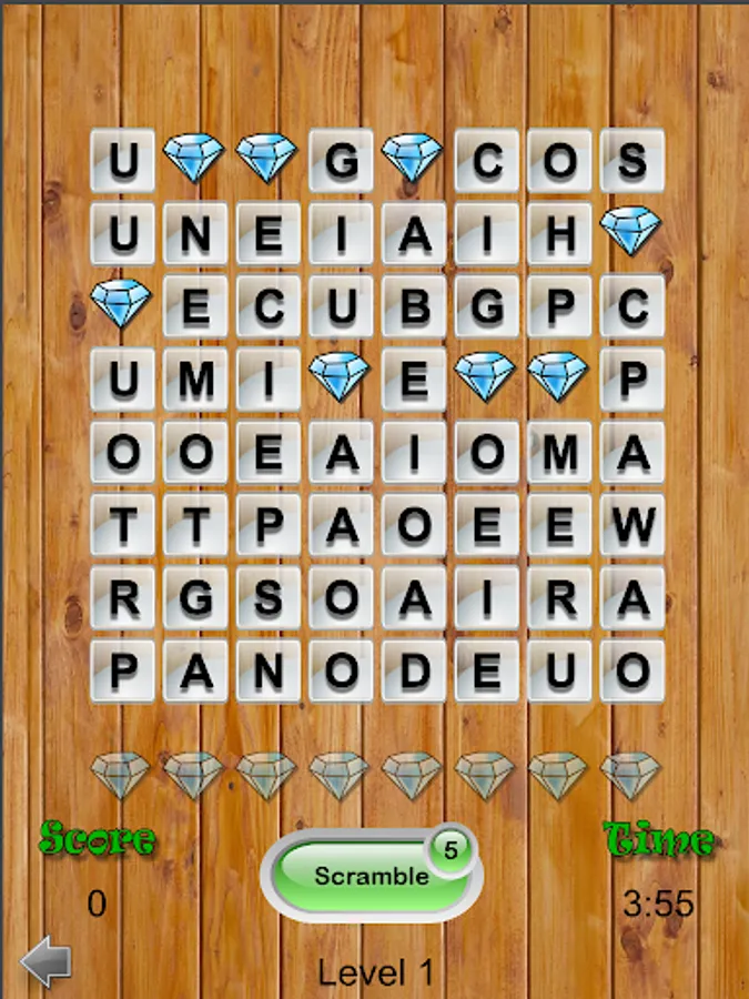 In Spell Them Out, you spell words to remove tiles in order to drop the diamonds towards the bottom. Drop all diamonds out of the game board to advance to the next level.