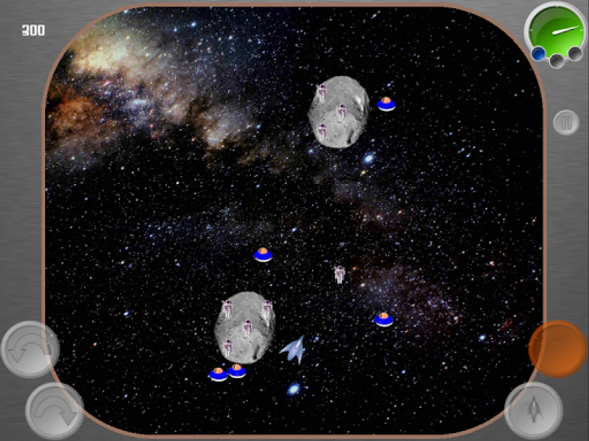 Keep yourself and the astronauts alive. Wave after wave of aliens will attack you with bullets and space mines. Pick up floating astronauts and return them to asteroids before you are destroyed or they float off into deep space.