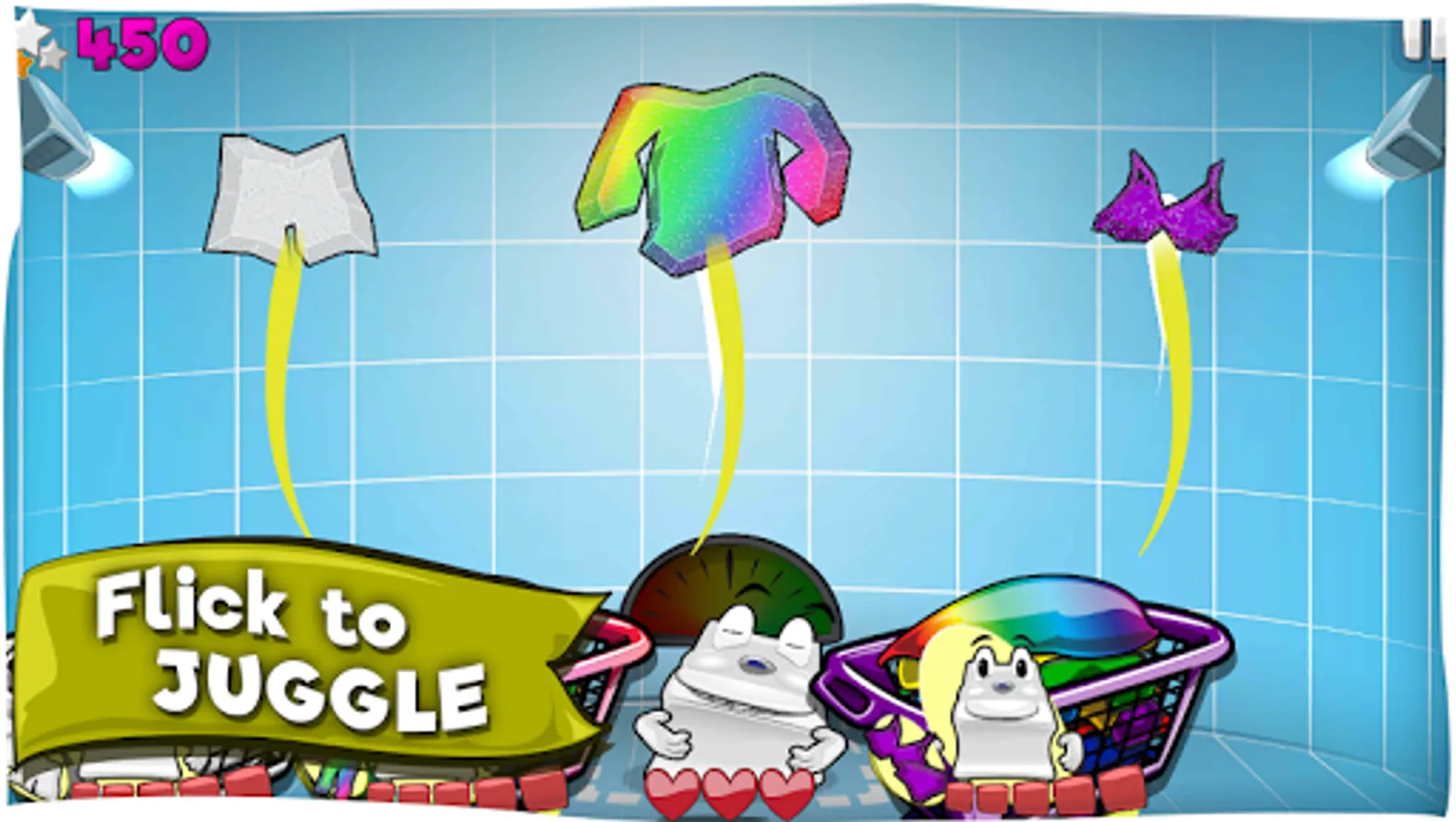 Help Washy the washing machine juggle, sort and wash an endless stream of falling laundry in this addictive game for iPhone and Android. Be sure to shake out those trinkets, the exploding tissue bomb really packs a punch! Start out with casual mode to train your laundry sorting abilities in the VR Tutorial level before unlocking new levels to test your skills including the Basement where you have to dodge explosive dirty nappies and a would-be relaxing Tropical Island if not for the coconut throwing monkey.