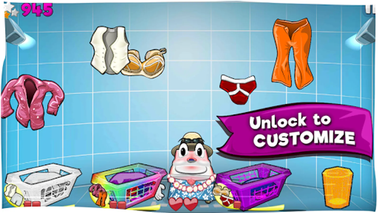 Spice up your game by acquiring fun laundry and basket packs and dress Washy up in new costumes, upgrade those power ups to assist your laundry efforts and when ready test yourself with Rush and Puzzle gameplay modes.