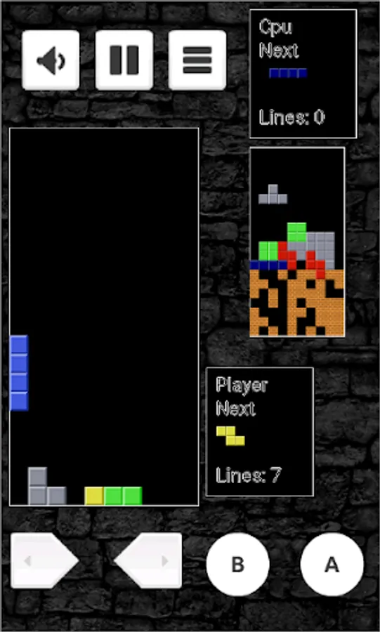 5) Attack - (Compete against the cpu, every completed line will be added to your opponent)