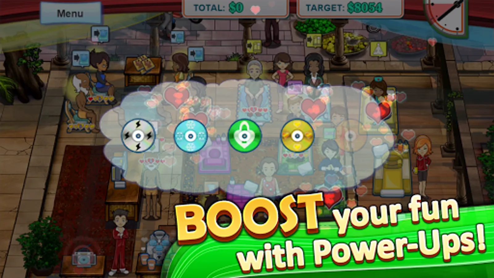 Enjoy shopping for over 60 items including new equipment, upgrades, staff, and special power-up songs to keep everyone motivated! Keep your customers happy and you’ll earn extra hearts and bigger tips to help grow your very own gym empire! 📈