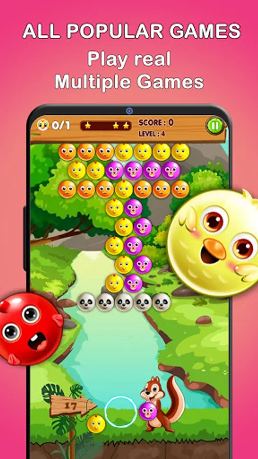 Touch the screen to break the stack platforms, crash the whole tower platforms of the stack by a ball, avoid black stack as the ball can't break black stacks, but you can make the ball fire by continuing breaking the stack.Jungle Bubble Shots-