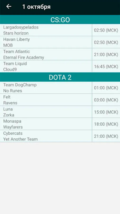 Расписание матчей CS:GO/DOTA 2 Screenshots