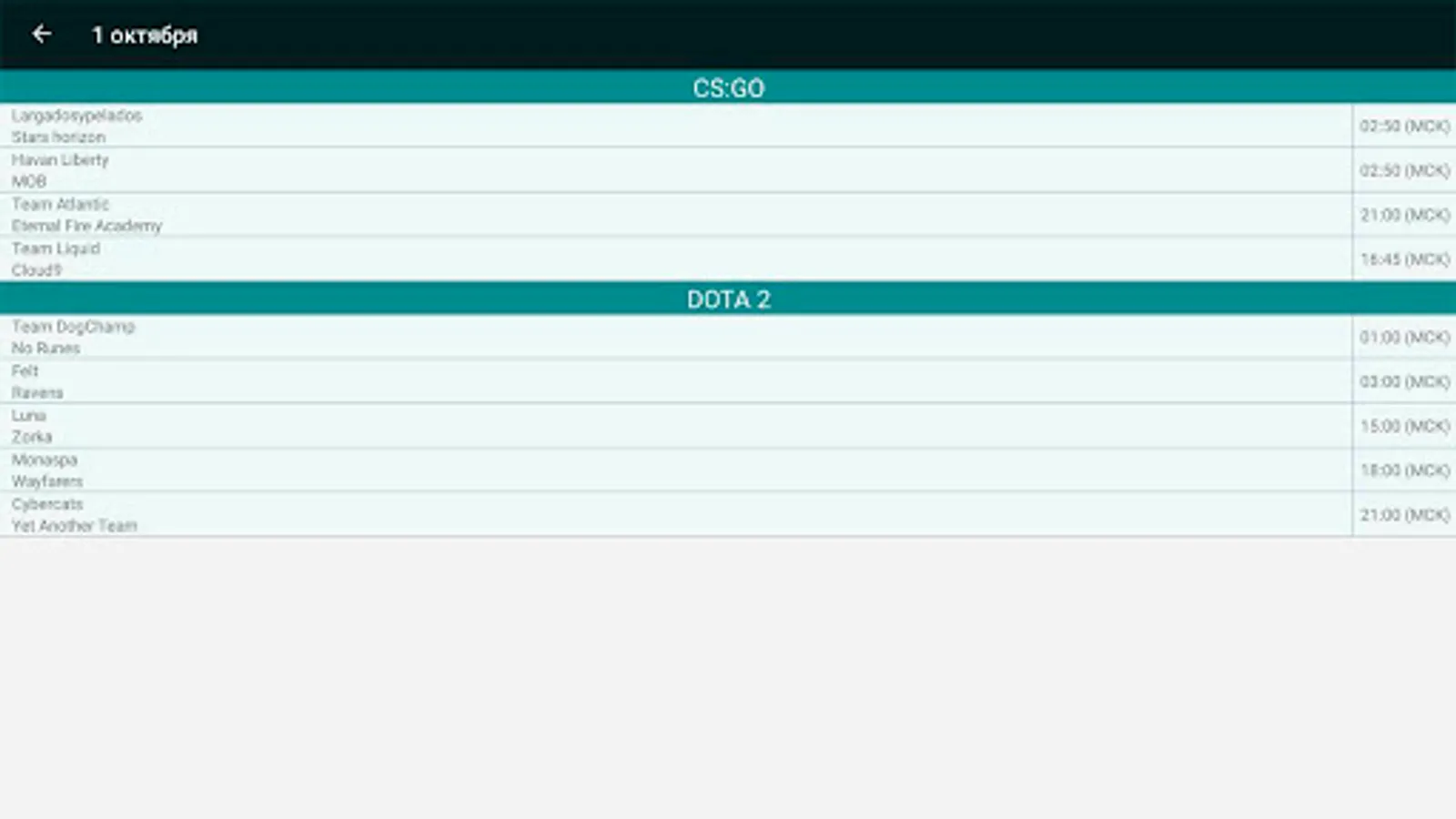 We bring to your attention the schedule of matches of one of the most popular games - CS:GO and DOTA 2. Now you do not need to waste your time searching for matches of your favorite teams.