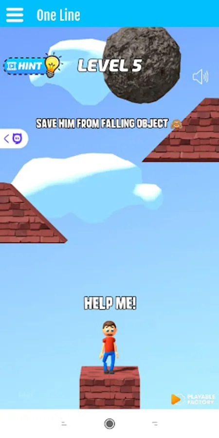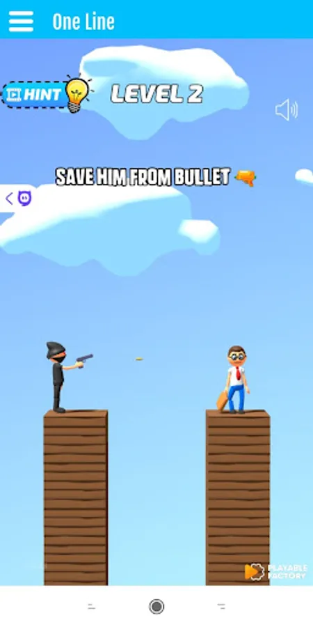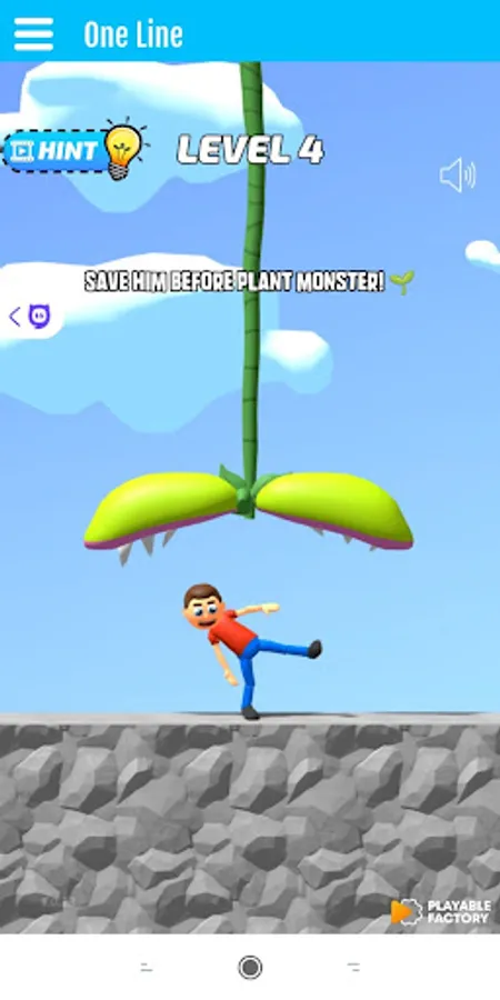 One Line save the man is a puzzle game where you draw a line to protect a man from something unfortunate that happens. From heavy rain and aggressive bees to angry giants, it's your mission to use the power of One Line to protect this innocent man!