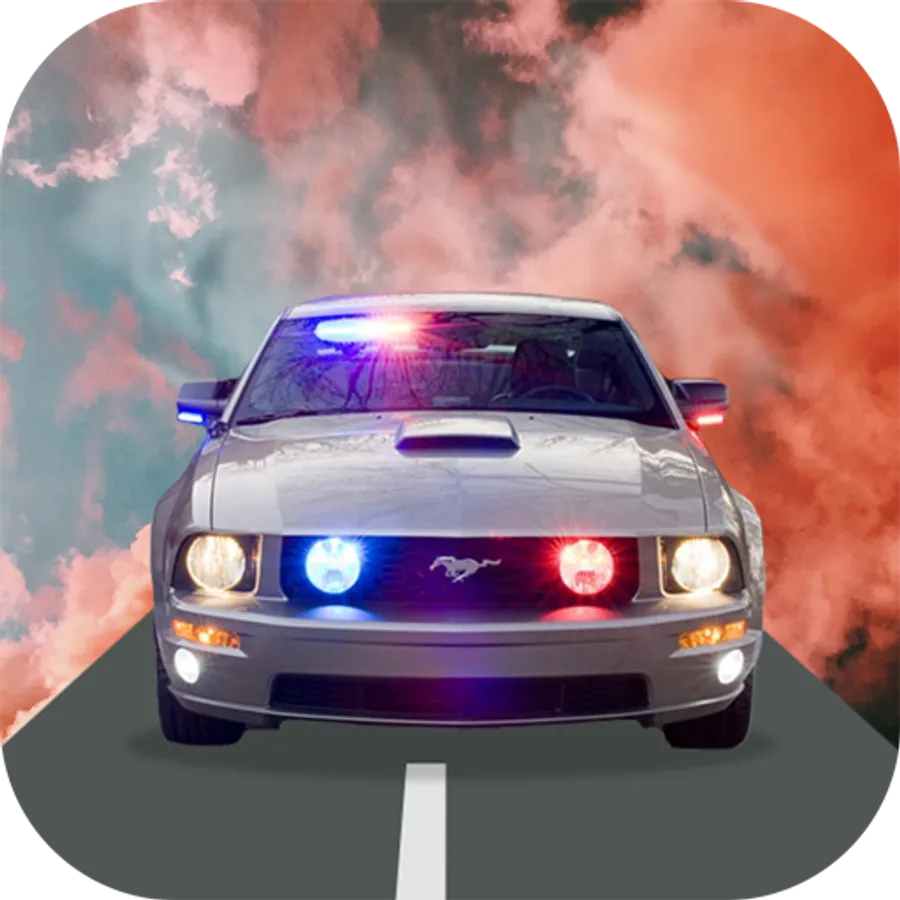 You are a police officer driving your car. You have to find your way around traffic without crashing into any other vehicles.