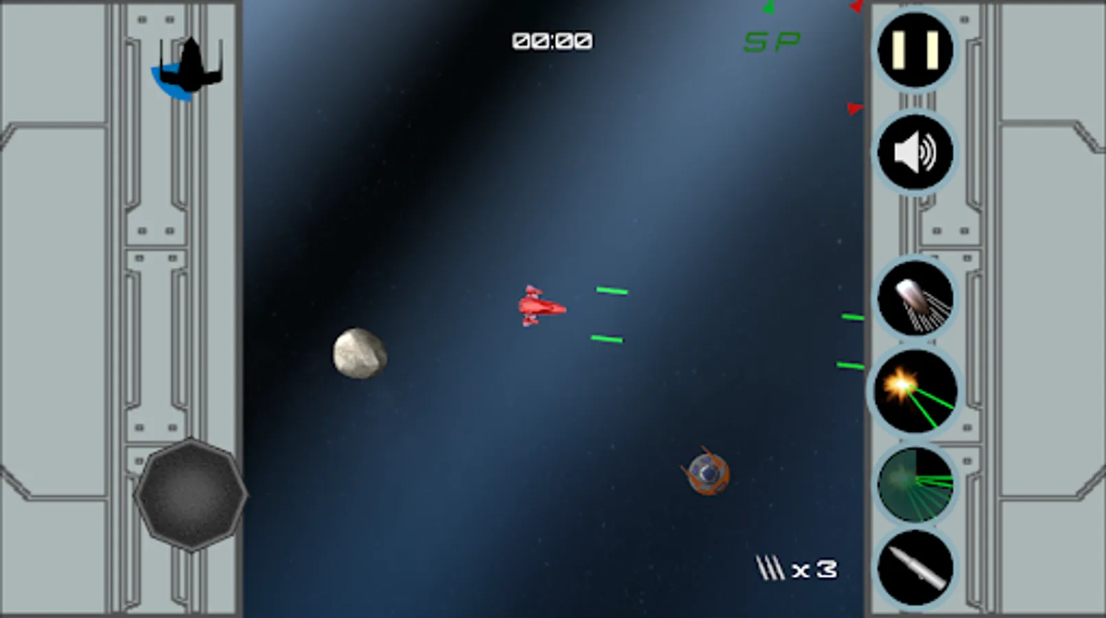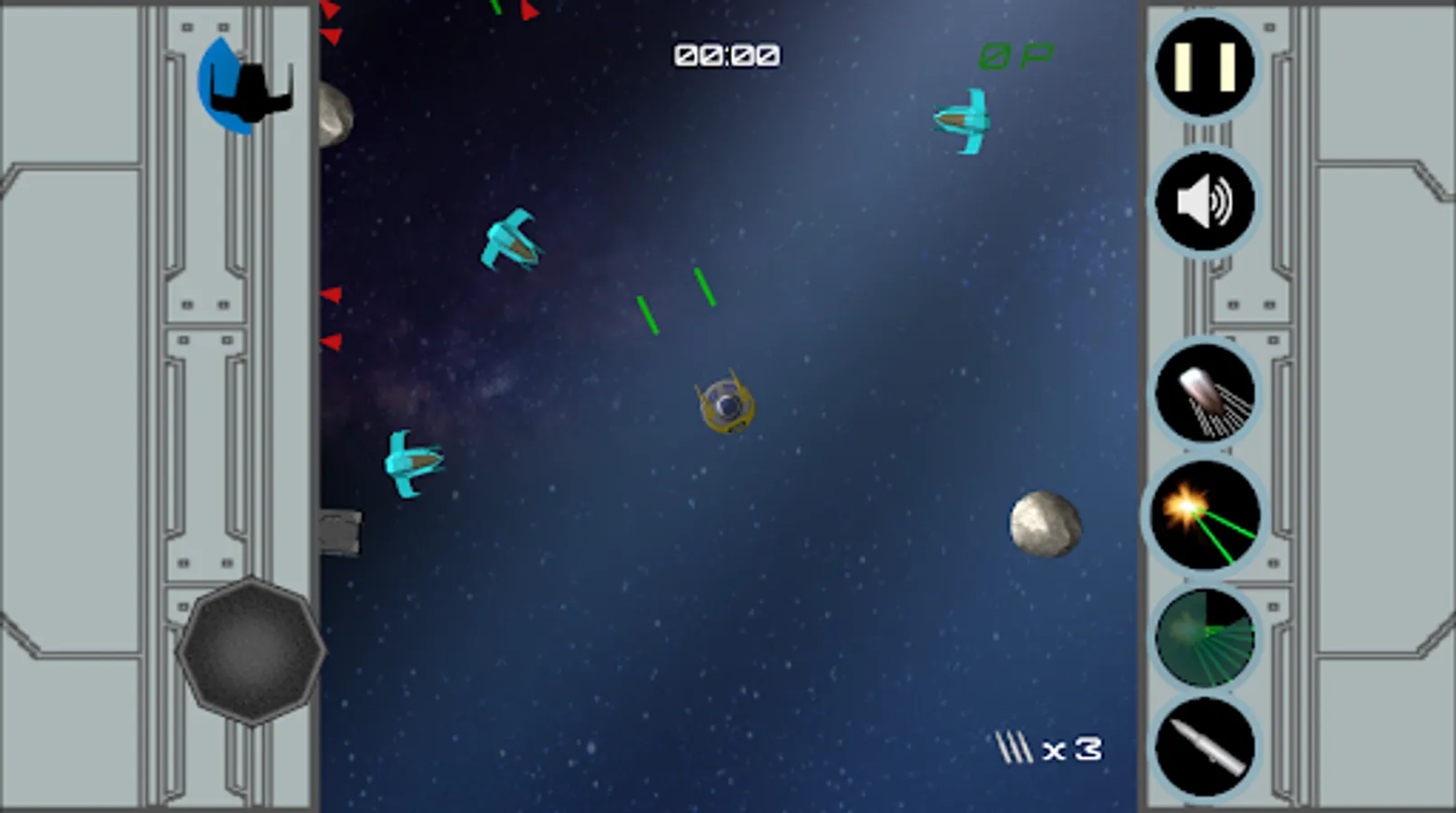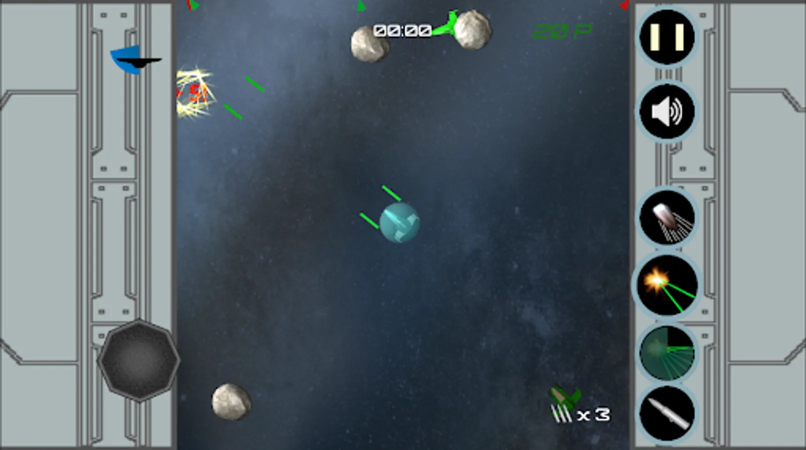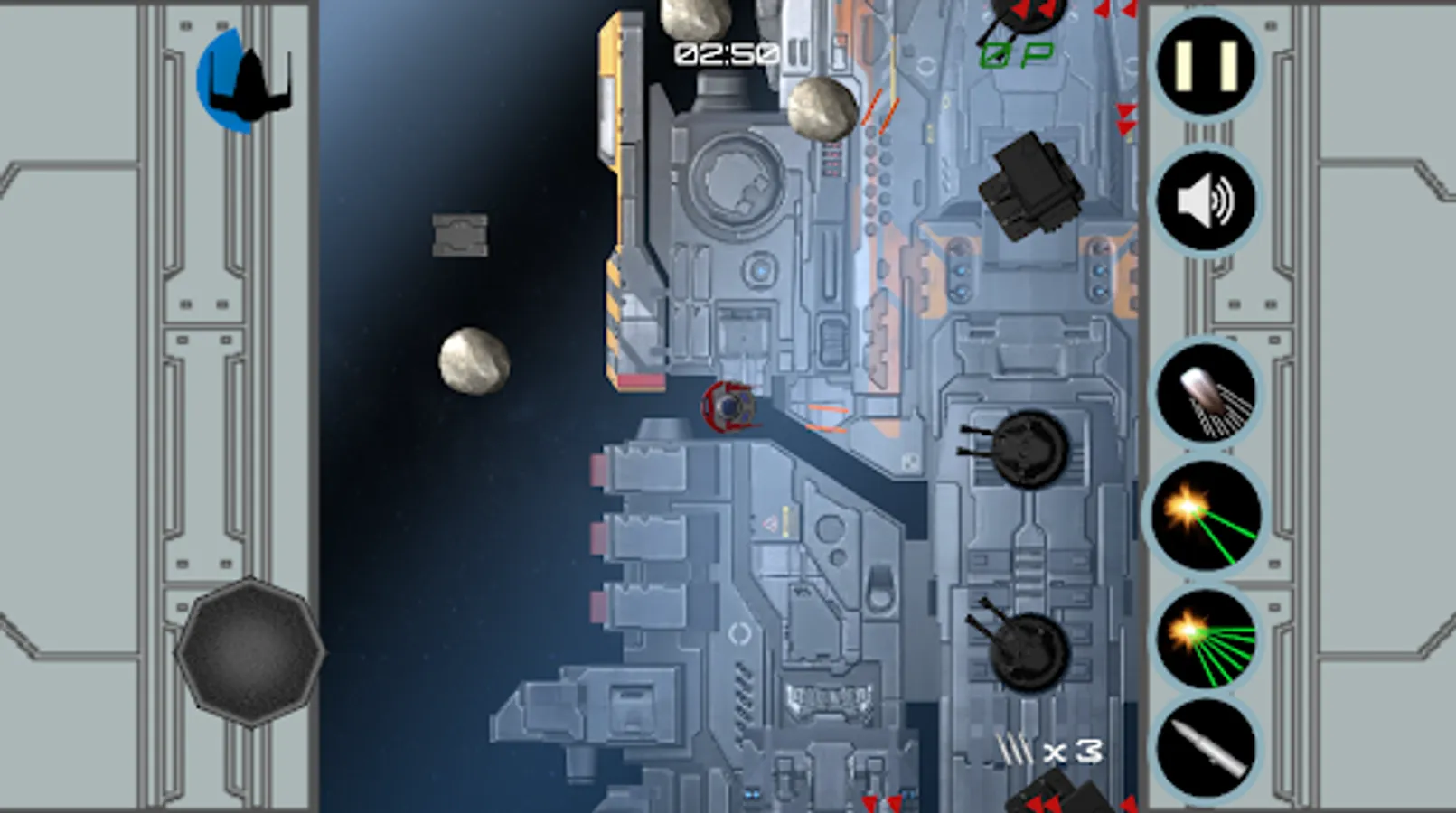 * Single player mode with a rich variety of missions: survive during a few minutes, defend your allied spaceship, destroy asteroids, face enemy squadrons, or just destroy a complete flagship full of deadly turrets! Of course, this isn't just the classic asteroids game space!