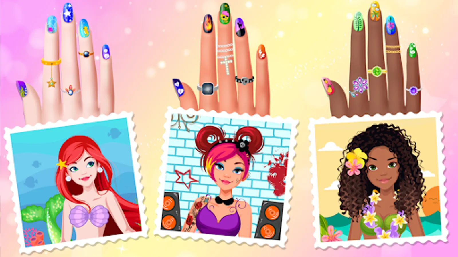 ⭐So many original nail decorations are waiting for you in our free beauty games!