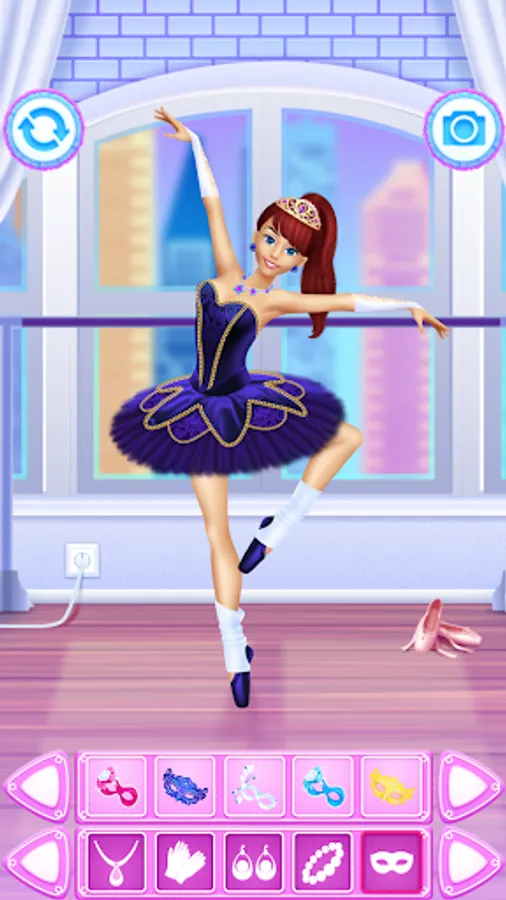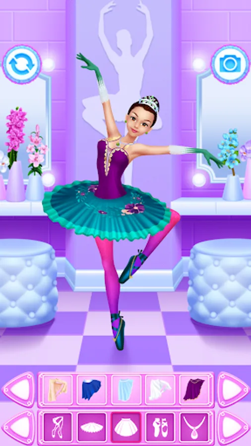 200+ items are available in this game for free, no-purchases or other annoying stuff typical for other dress up games out there. Pick gorgeous dresses, skirts, tops and many other categories of clothing items for you ballerina.