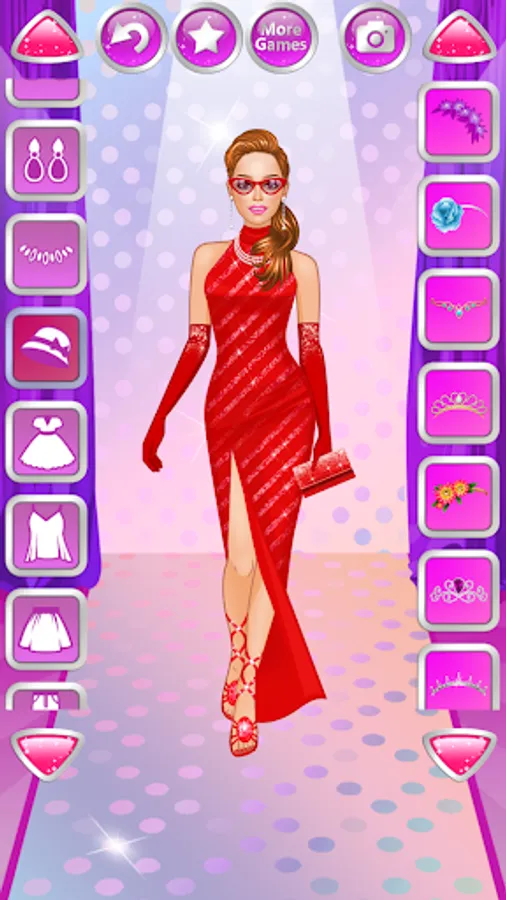 If you are a fan of shopping, cosplay, beauty salon and dressup simulators, be sure to press "More Games" button inside the game to download and play more of our makeovers for Android. Our doll styling and fashionista girl apps are free and totally cool. Design a fancy outfit, pick a trendy hairstyle and make up actresses, top models, celebrities, and socialite shopaholics on the red carpet. Train your outfit & image designer talents with our great fashion apps for girls and fashionistas of all ages.