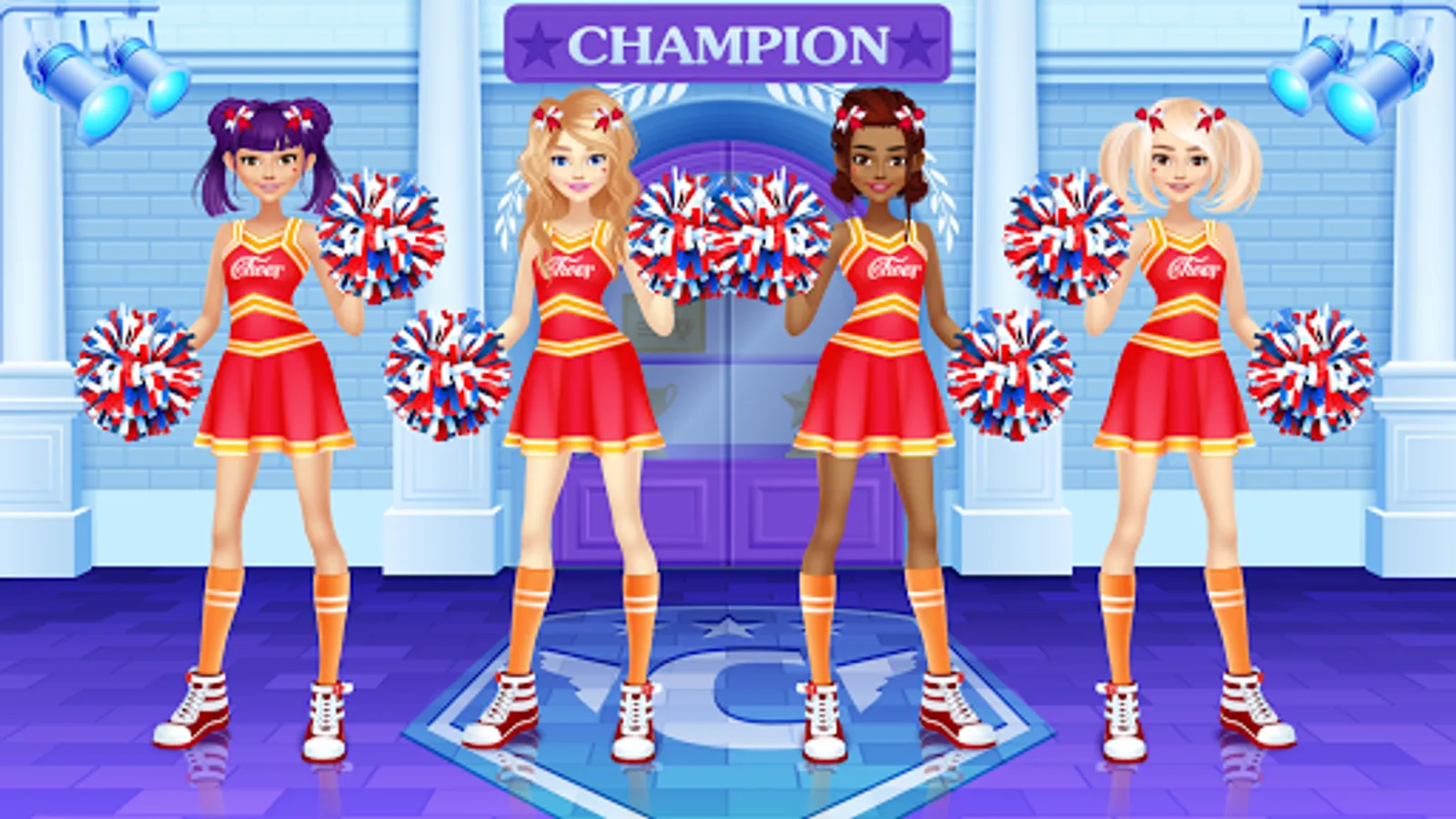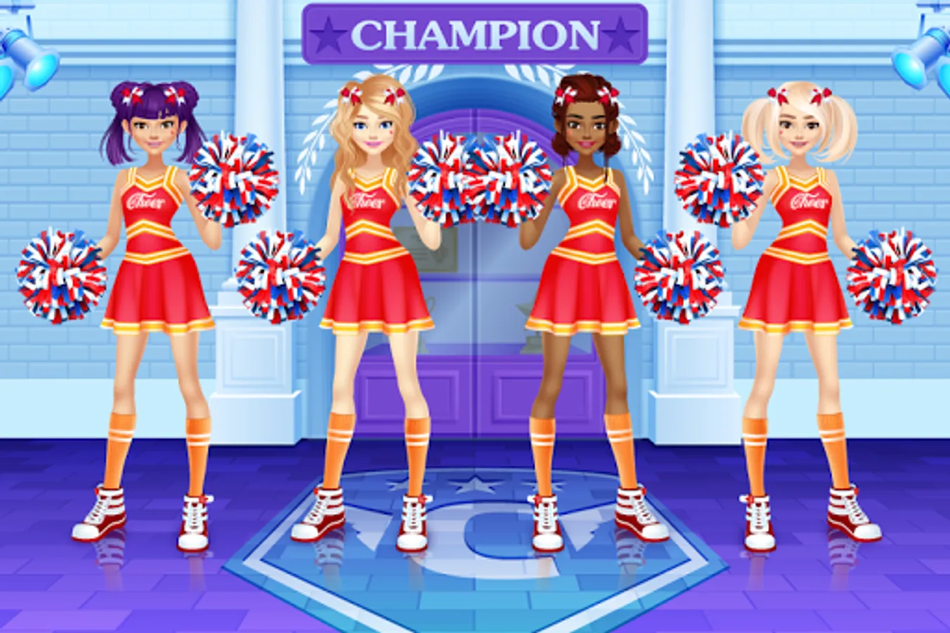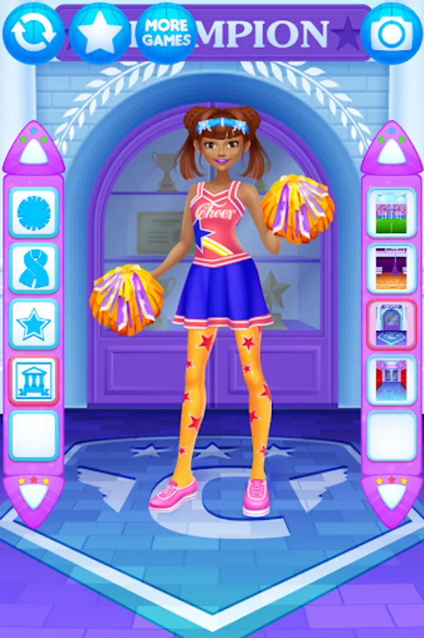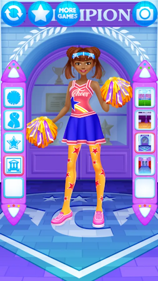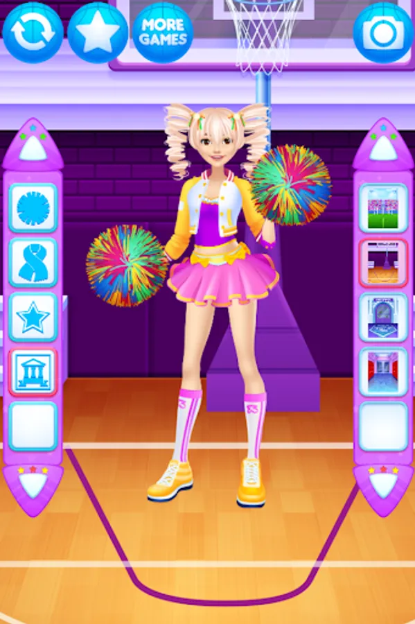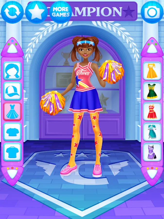 Dress up the cheerleader friends in new outfits. Find the ideal match of the tops with trousers, skirts, pompoms, shoes and other items for the girls.