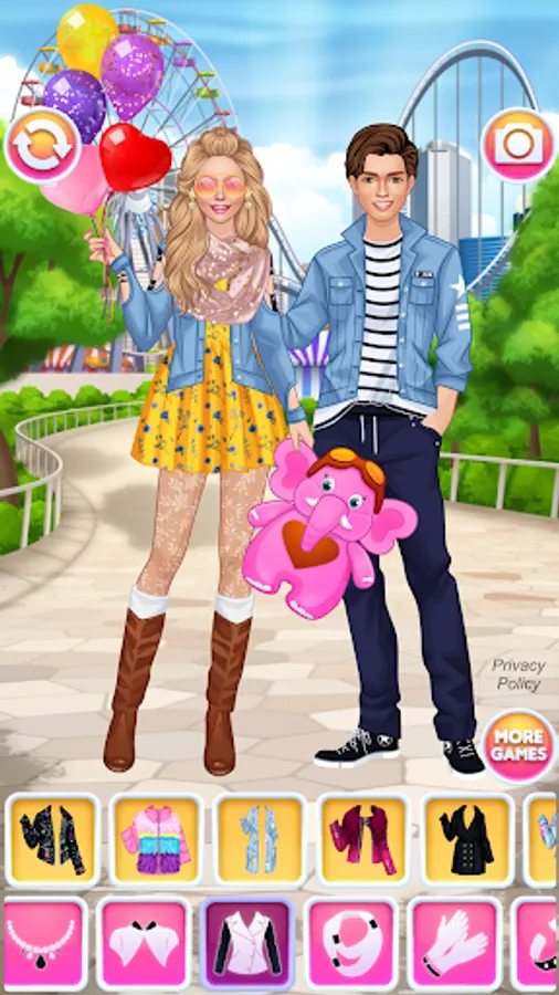 Pick a fancy hairstyle, select from a multitude of facial features to create a unique avatar, then put together some trendy look for the girlfriend to fit both the setting (6 different backgrounds) and the guy's look. Make it a great romance event for the young lovers worthy of a note in the girl's personal diary.
