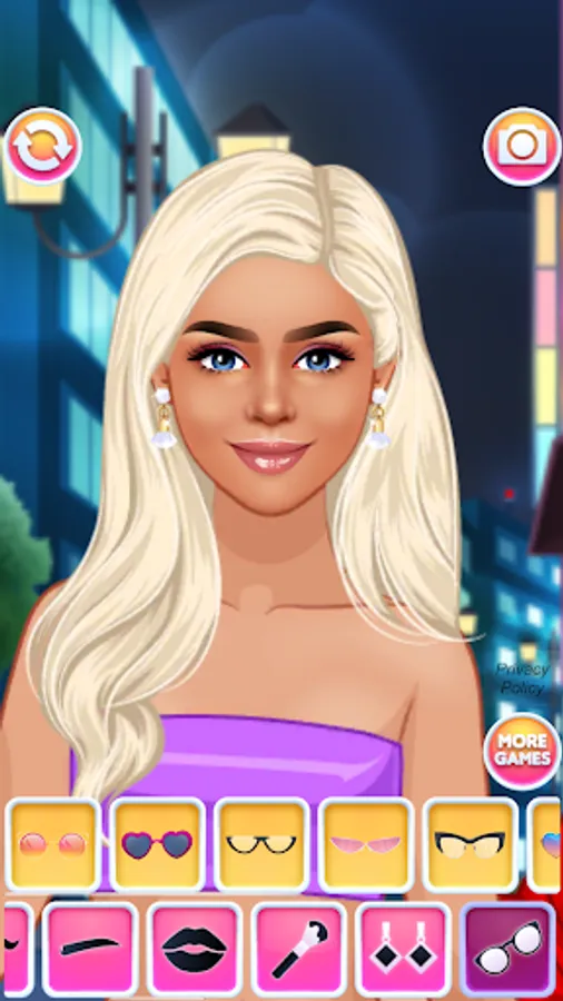If you're really into digital makeovers and doll dressing apps, be sure to press "More games" inside the application. Our dressup and makeup simulators for fashionista girls are really the best: not only they are free but also have huge wardrobes of apparel items as well as custom character face setups. There are no locks, no in-app purchases, no waiting - just download to your Android phone or tablet and start styling.