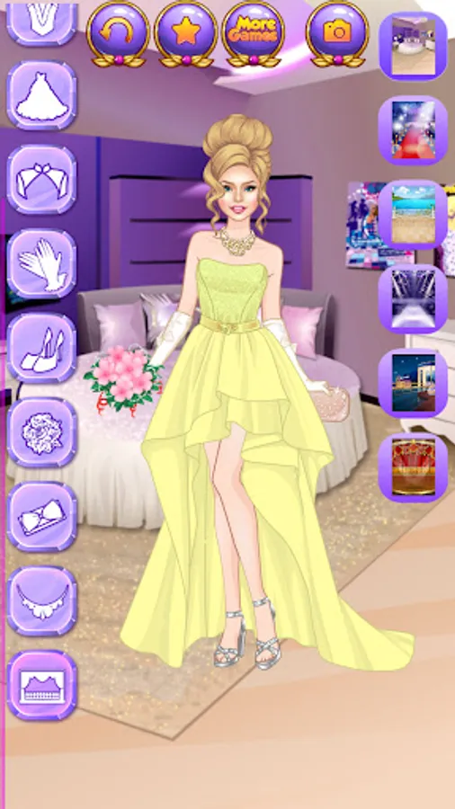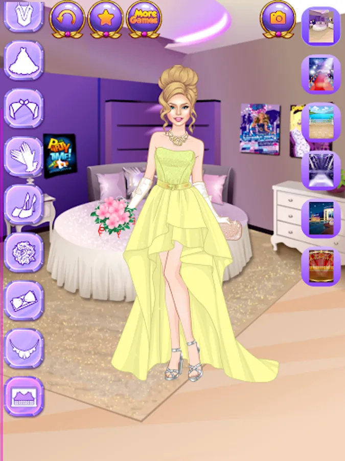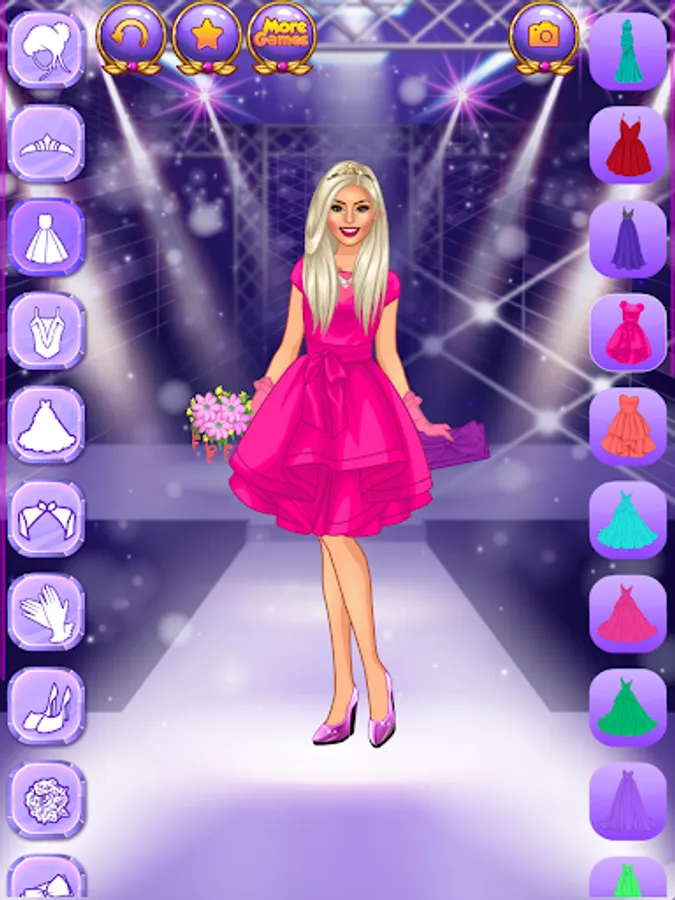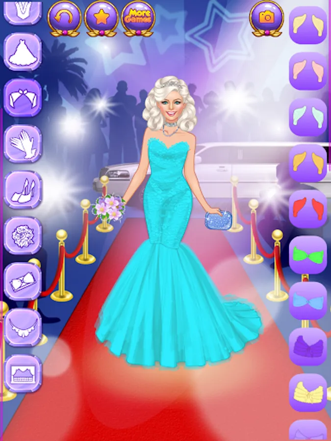 This new dressup game for fashionista girls offers a huge selection of clothing items completely free of charge. Pick any of the superstar women and put together great outfits from hundreds of items. Pick a hairstyle and a trendy outfit for each beauty.