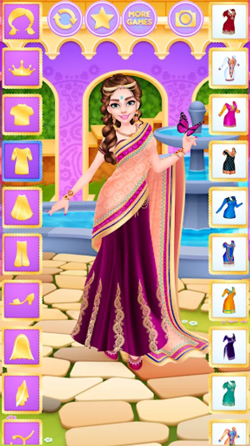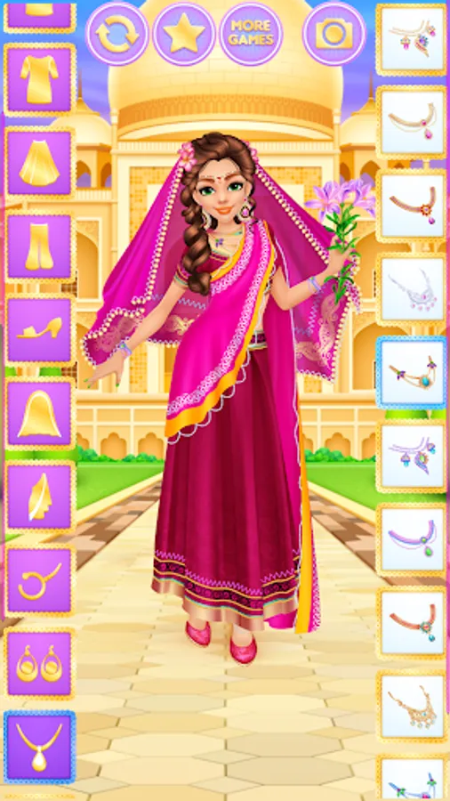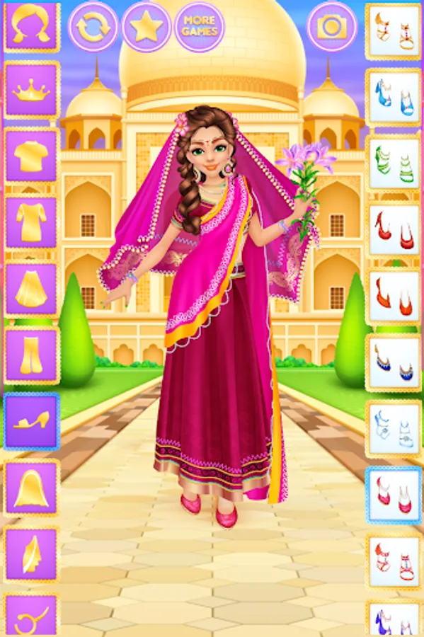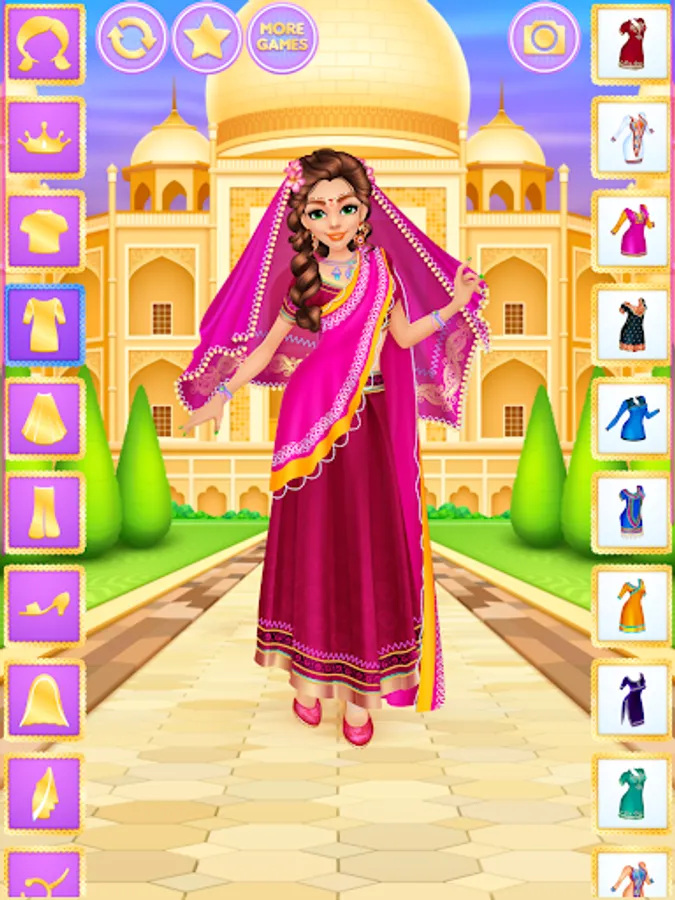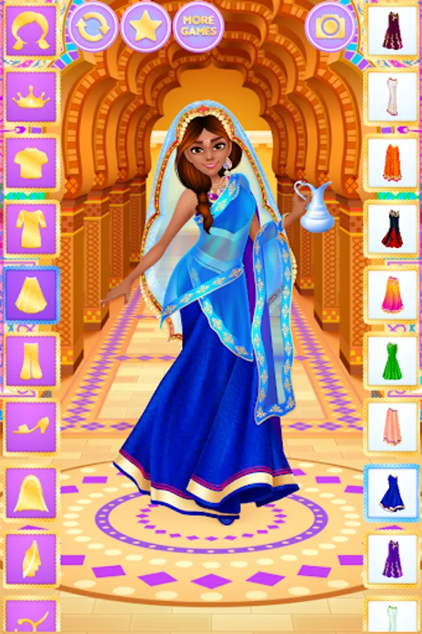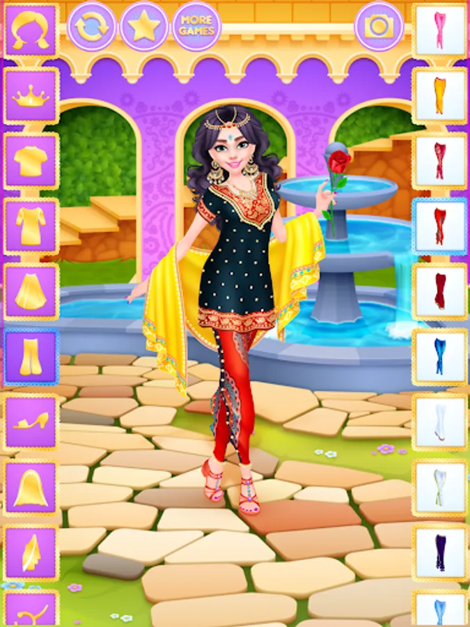 "Indian Princess" is a new dress up game for girls who are interested in the culture of India, Indian dances and traditional Indian clothes.