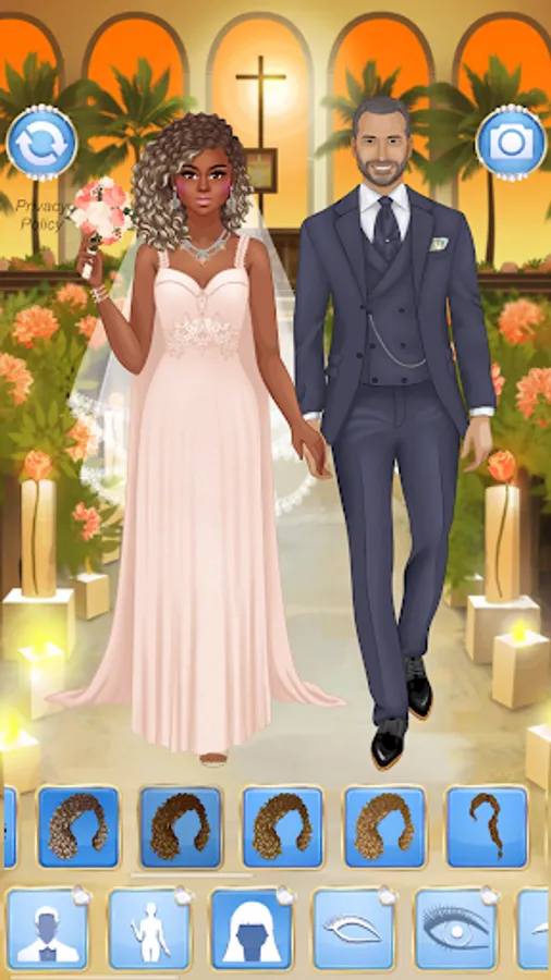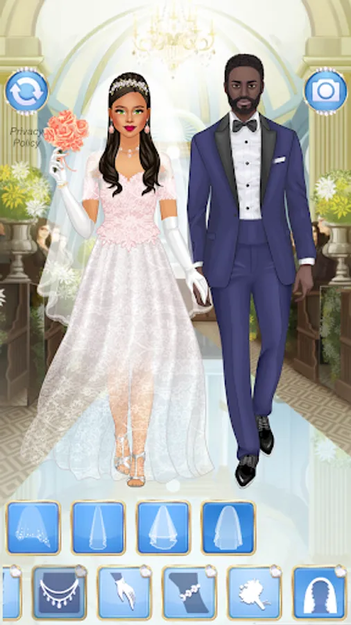 Dressup 4 gorgeous brides in wedding dresses for their marriage! The game offers a huge selection of clothing items, trendy hairstyles and classy accessories. Over 300 items in the app, all available for free for all your styling fantasies! A whole beauty & fashion salon for bride princesses and fashionista girls. Apart from the hairstyle, you can select facial features, earrings, blush and veils.