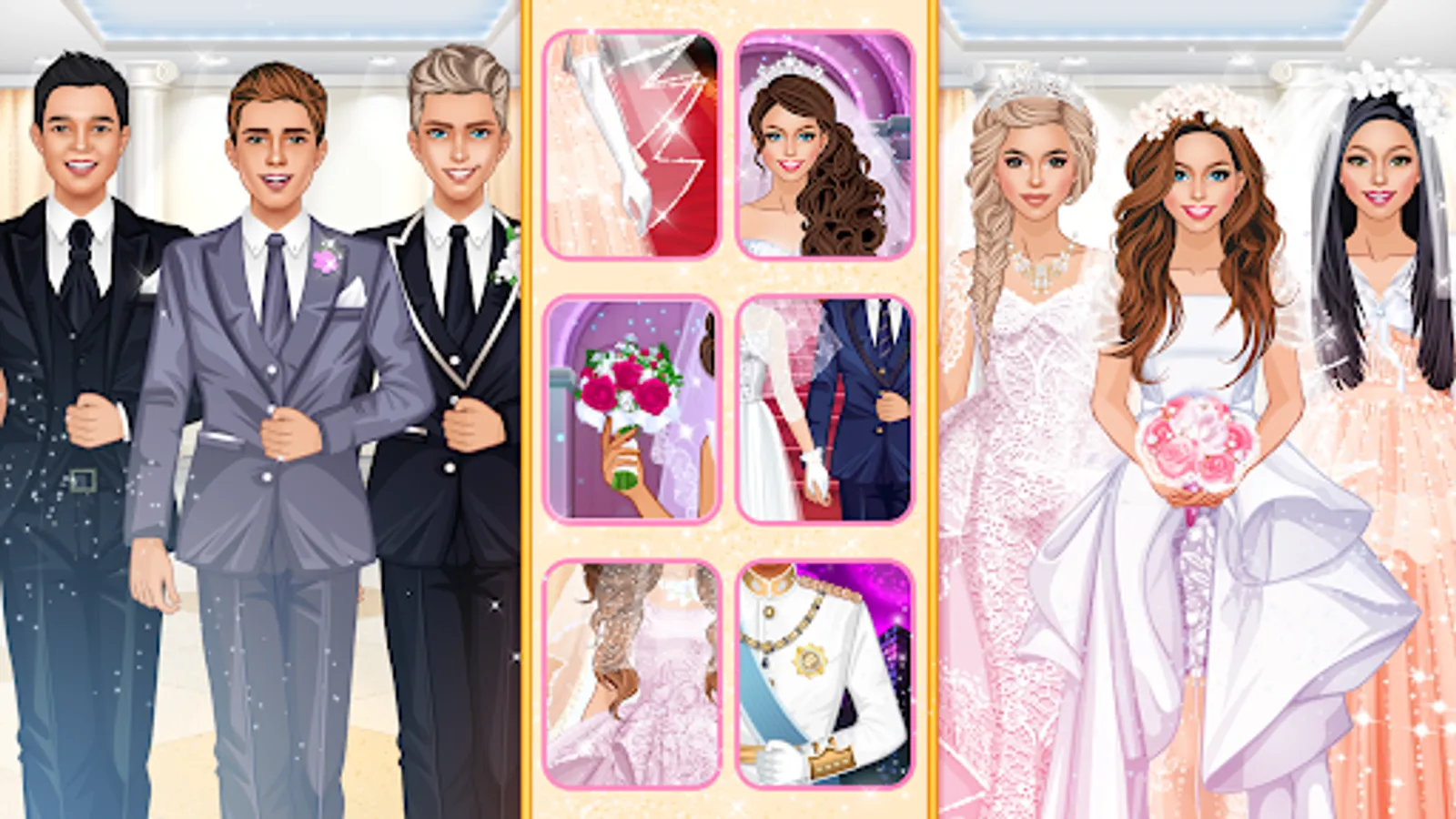 Pick one of the 8 grooms: a movie actor, a famous athlete, a Spanish prince, a Wall Street genius, a former IT wizkid, a conservative real estate mogul and more! 8 backgrounds (church, yaucht, restaurant, family estate and more) set up the tone for the marriage ceremony.