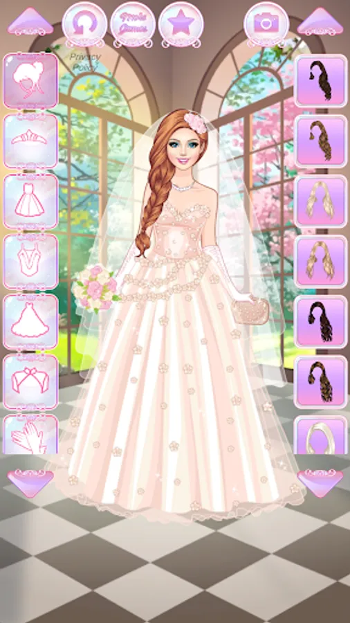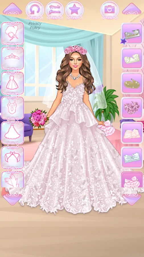 All our dressup games for girls are completely free and offer no in-app purchases. 200 items will make for an enormous number of unique combinations in this super model wedding salon! Dozens of classy dresses, skirts (long and short), shoes, wedding veils, handbags, bouquets and jewelry will let young fashionistas experiment with different bridal outfits for the top models and develop their artistic taste and fashion designer skills.