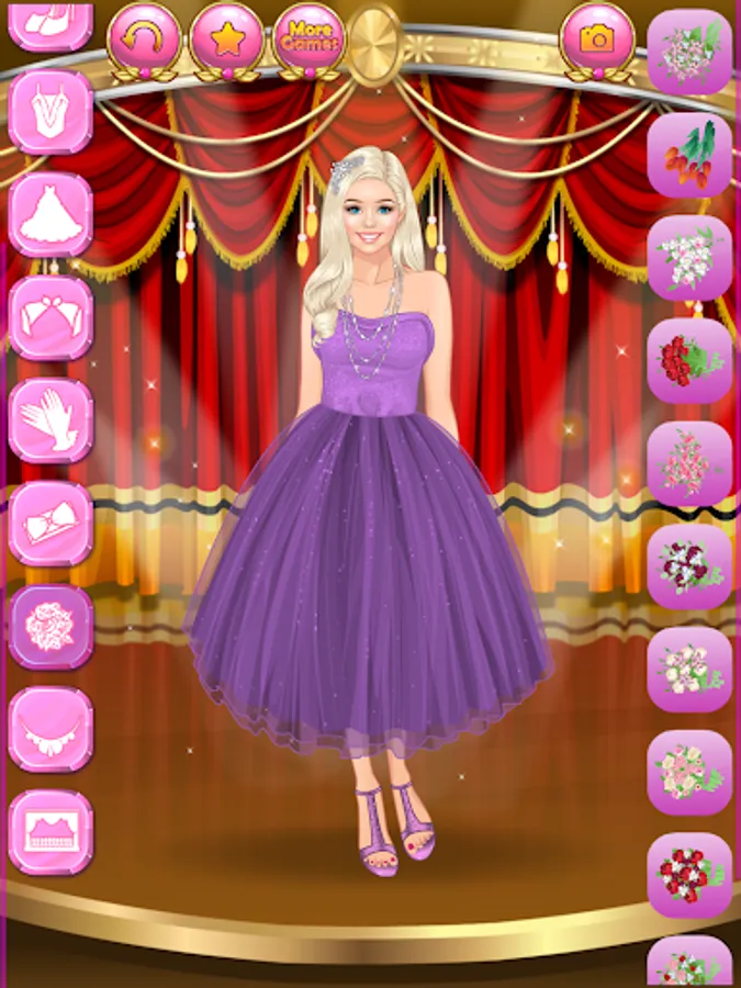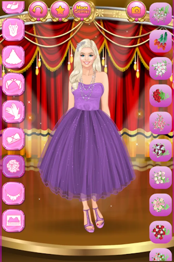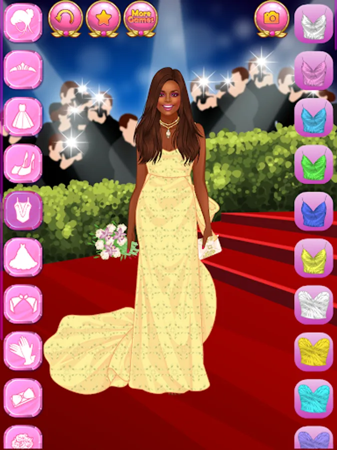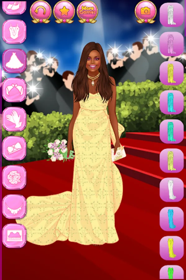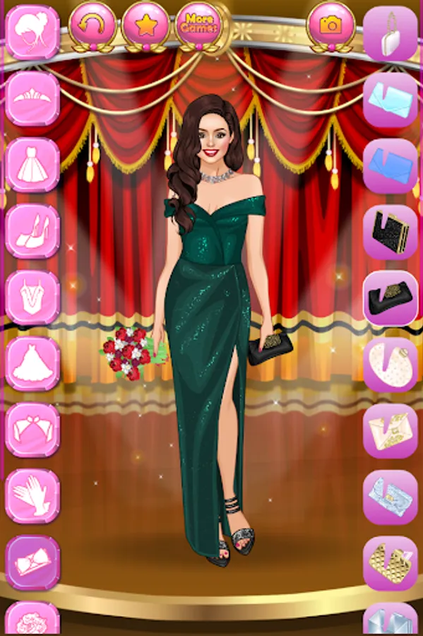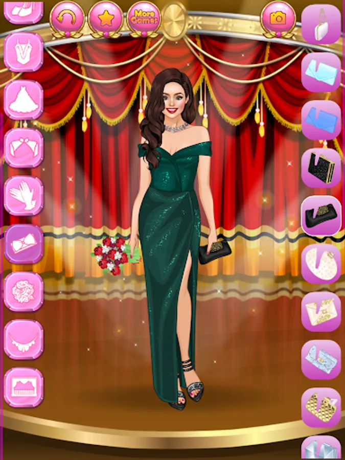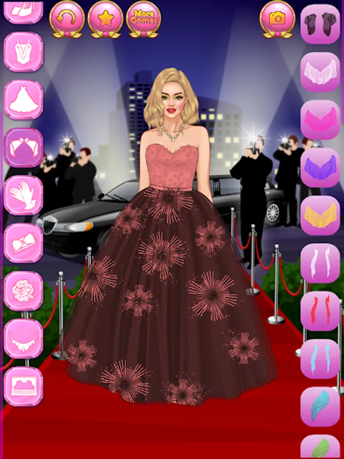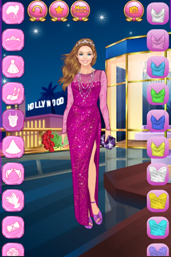 Create millions of stylish and trending glam outfits for super stars and celebrity models! Do you dream of getting famous, become a star, an actress, a singer or a reality show celebrity? Here is your chance to dive into the wonderful world of glamour, wealth and happiness! Help the famous fashionista women with their makeovers. Choose a trendy outfit for each young beauty, because they are attending a charity event tonight! Press the button with the image of a camera to make screenshots and show off your style sense and fashion designer talent to your best friends!