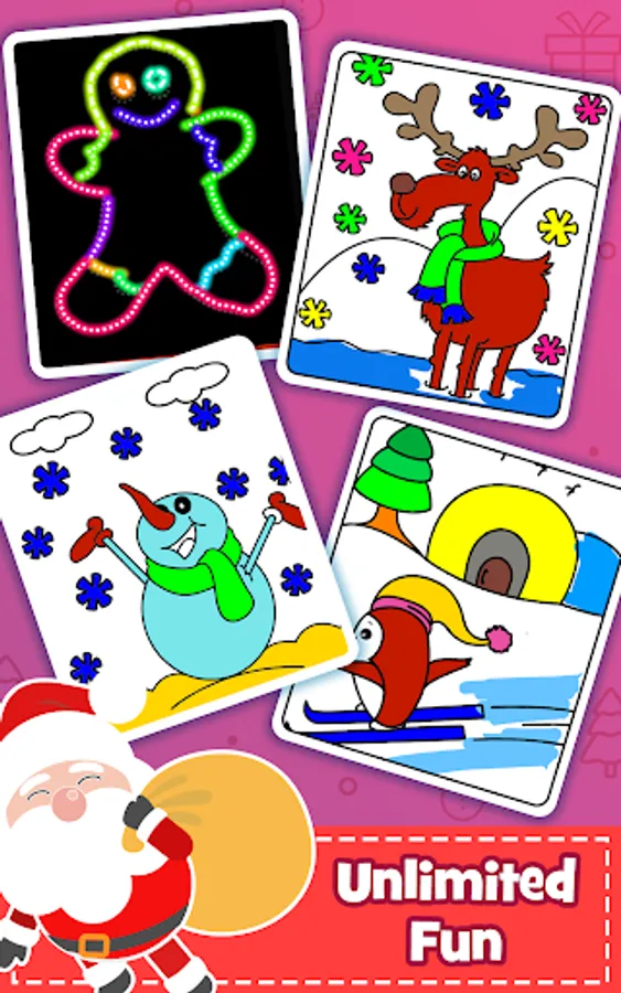 The Christmas coloring game for is prepared to enhance children's creativity while coloring & drawing Santa pictures. If you're looking coloring games for girls 10 and older, this is the best coloring app. Starting 3 - 5 years old, for children👓. in Santa world. This coloring game presents painting and drawing for kids on Android. Coloring book for toddlers help your children to relax and feel better💃. Beautiful Colors, 👘Pattern & Glitters to use for Colouring, drawing and painting. Create your own color combinations in the drawing game for children. The game is designed for toddlers and babies. Doodle their own drawings & Share your creations with family and friends of Facebook, Instagram and on other social apps. Kids like to paint & sketch on it