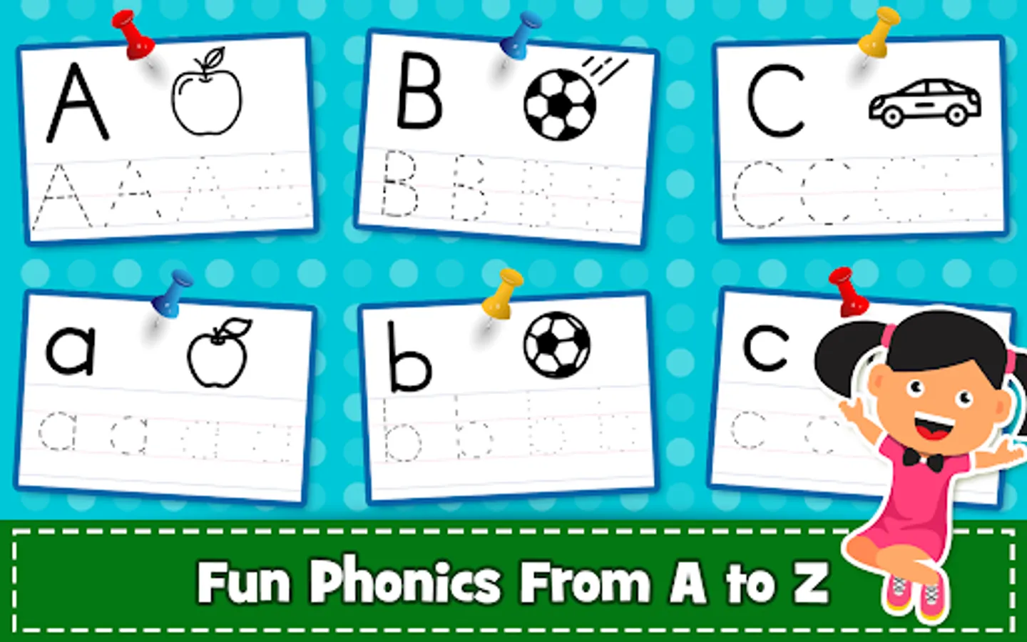 ABC PreSchool Kids Tracing & Phonics Learning games ♬ is a free phonics and alphabet teaching app that makes learning fun for children, from toddlers all the way to preschoolers and kindergartners.