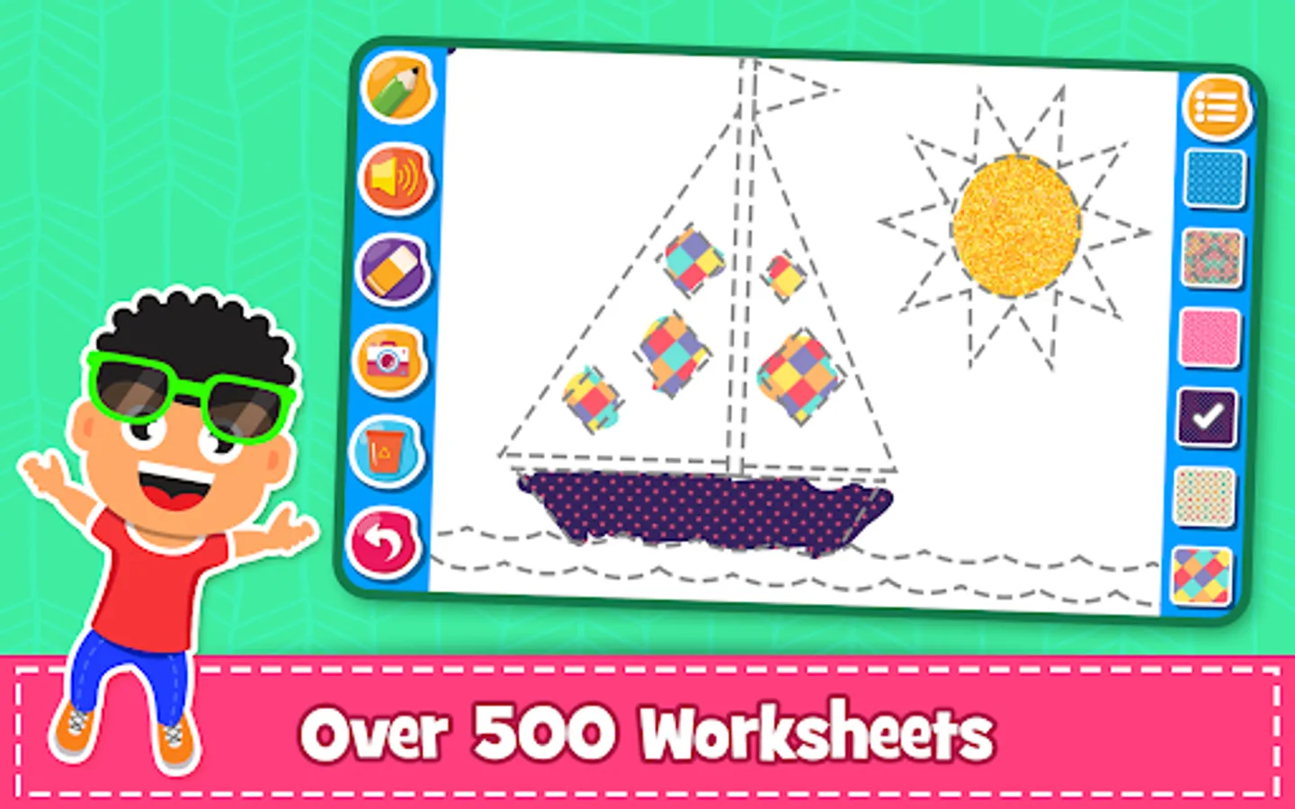 Choose from over 350+ images to color, paint, draw, or doodle. Let your kids doodle their fingers away and show their artistic skills. Choose from a variety of crayons, glitters and patterns to color