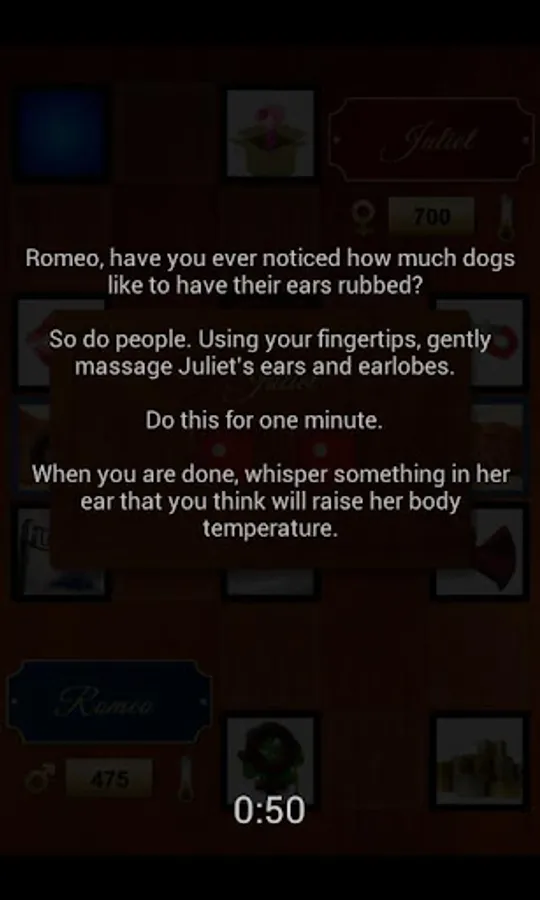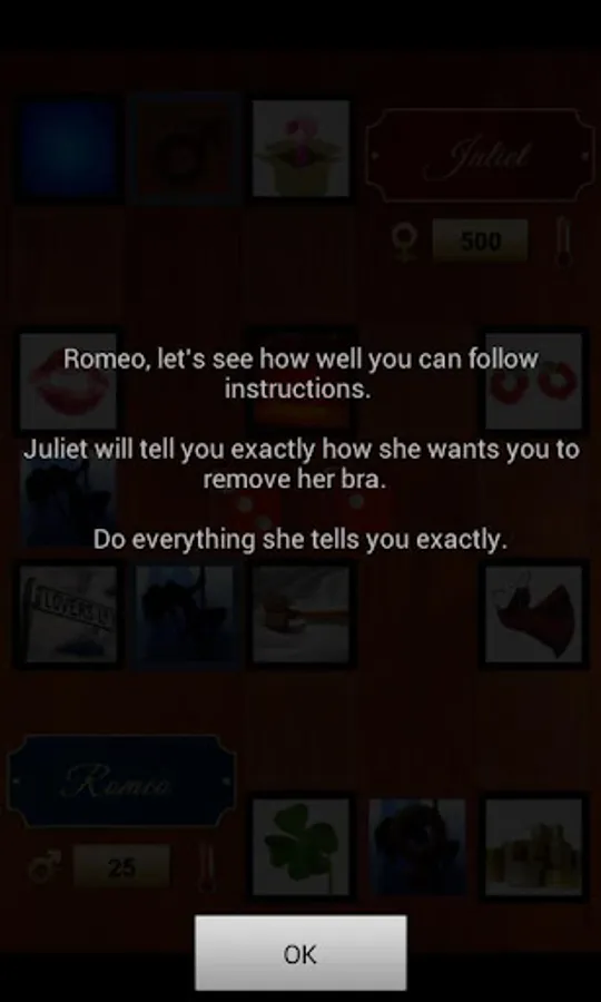 Bliss is played much like a board game. Each turn, you roll the dice and move around the board. When you arrive at a space on the board, you will be given an action to do. Bliss chooses an action for you based on the space you landed on, what you are wearing, how long you have been playing the game, what toys you have available, and other factors. As the game progresses so do the actions. Bliss is the world's first intelligent romantic game for lovers!