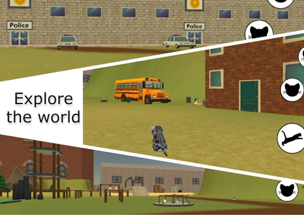 You are a cat and you were left in the park while your owners are busy. It's a domestic cat life simulator. Be a cool cat. Go into the cat's park and find new adventures and friends. Train your parkour skills, drive some amusing vehicles and much more.
