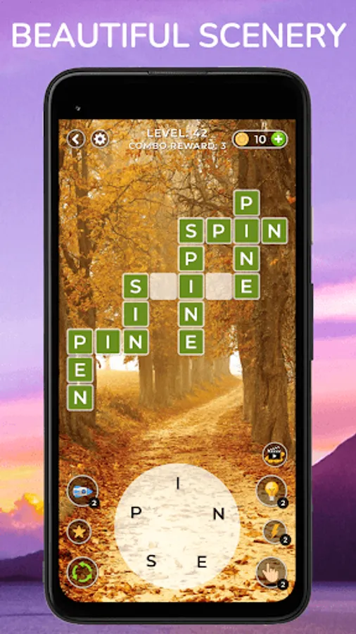 Challenge yourself to connect letters and find as many hidden words as you can! Unlock stunning landscape backgrounds to escape from home and relax your brain.