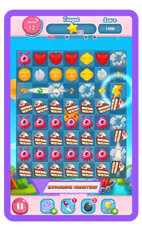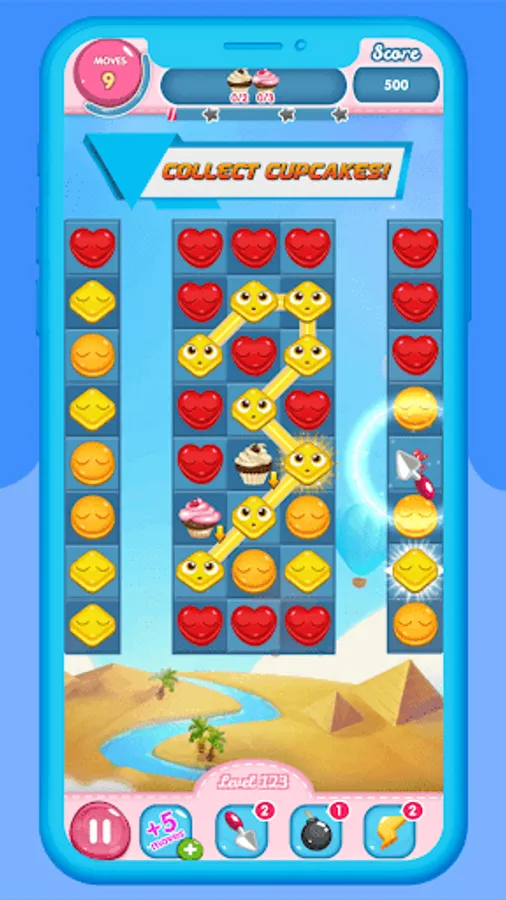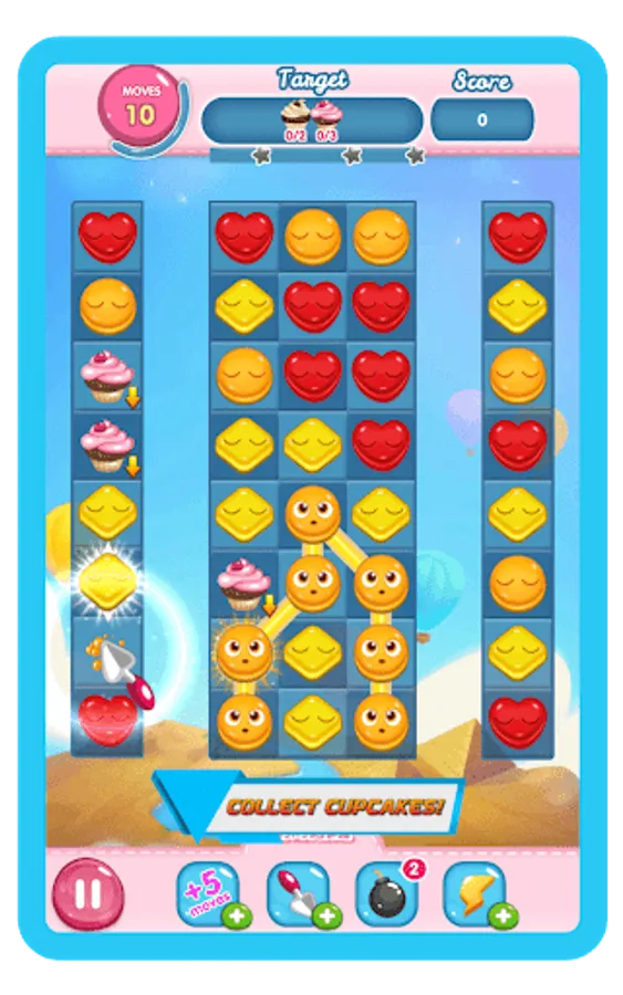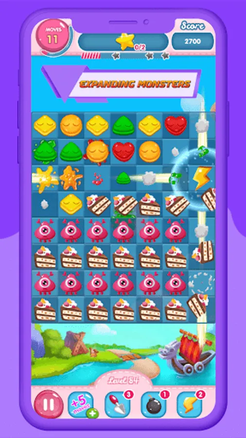 + Link and match 6 or more candies, and get a special booster that creates powerful magic candy with arrows.