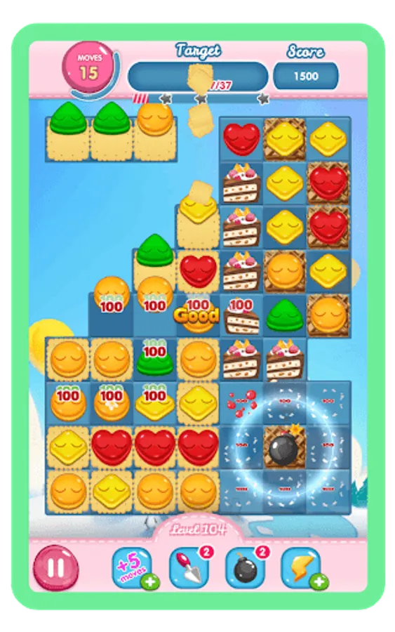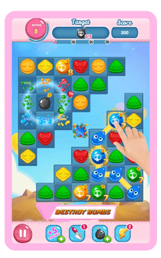 + Link and match special candies to create more powerful effects and pop even more candies!