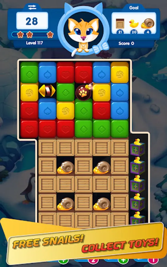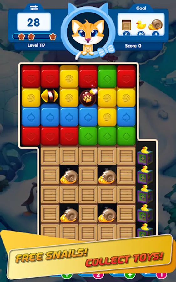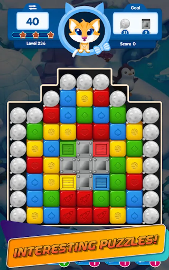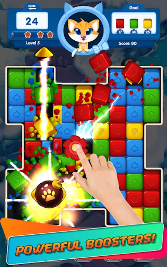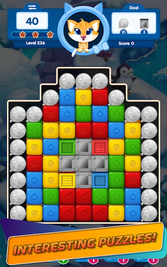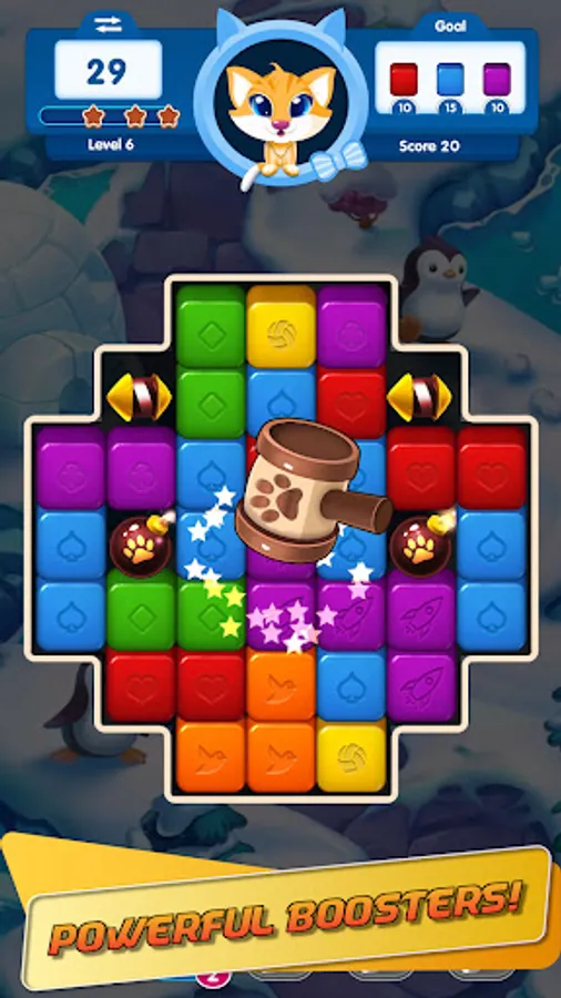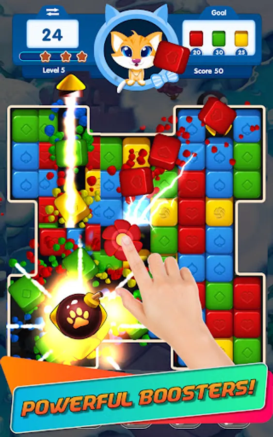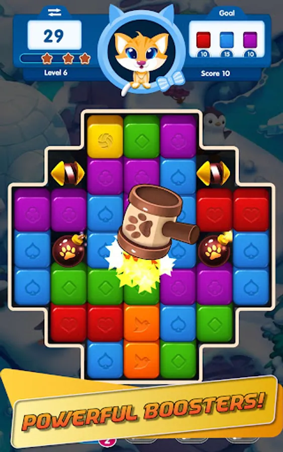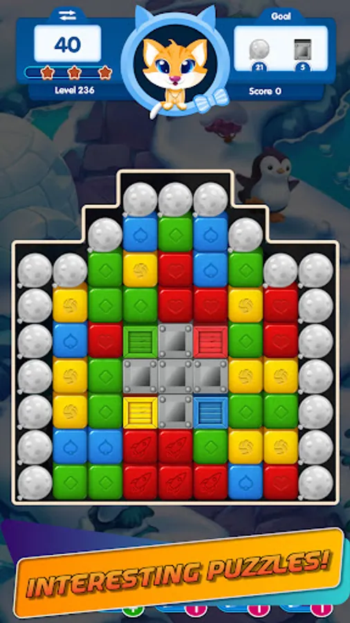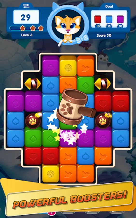 + Try to clear a level with fewer moves to get a higher score. The more blocks you pop, the higher score you will get! Complete the challenge that is set at the start of each exciting level. clear the board, and pop all the colorful blocks.