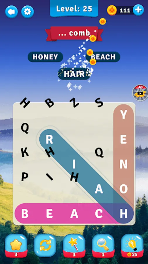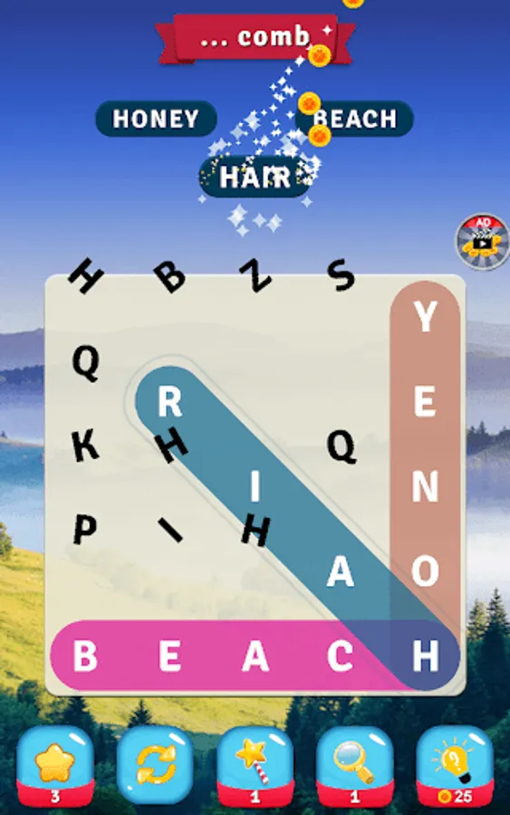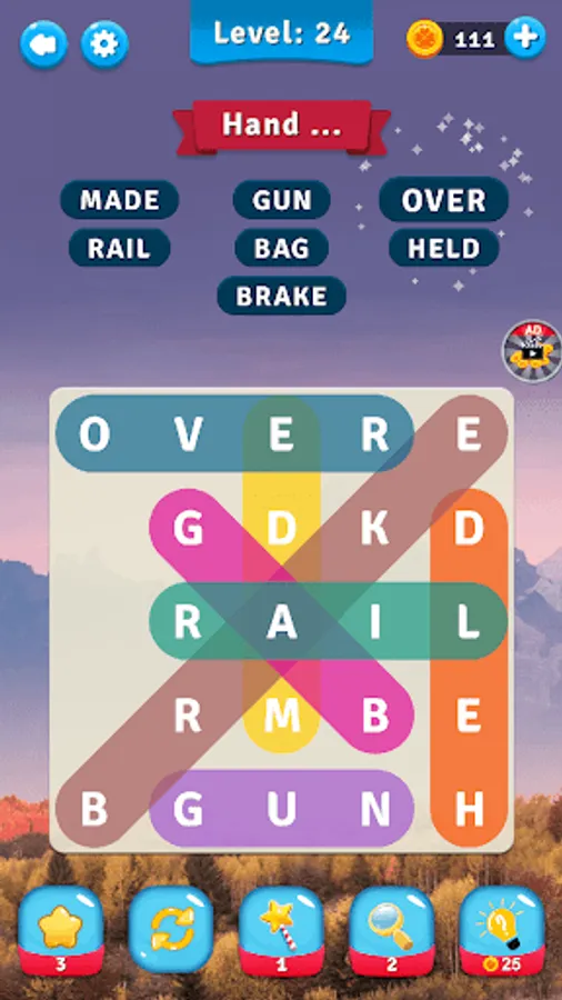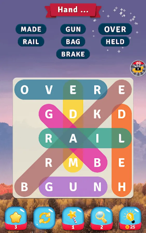 Simply swipe your finger across the letters to form words and find the hidden words in the puzzle.
