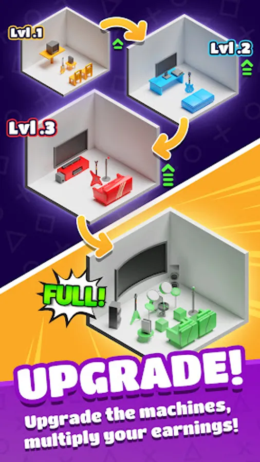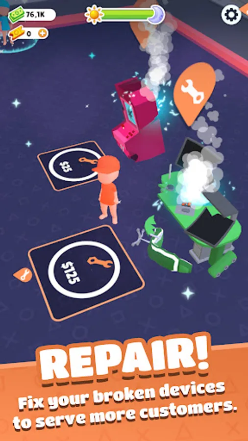 Collect tokens left by players from the ground! Convert tokens into cash at the cashier. Open new playgrounds and gain more customers!