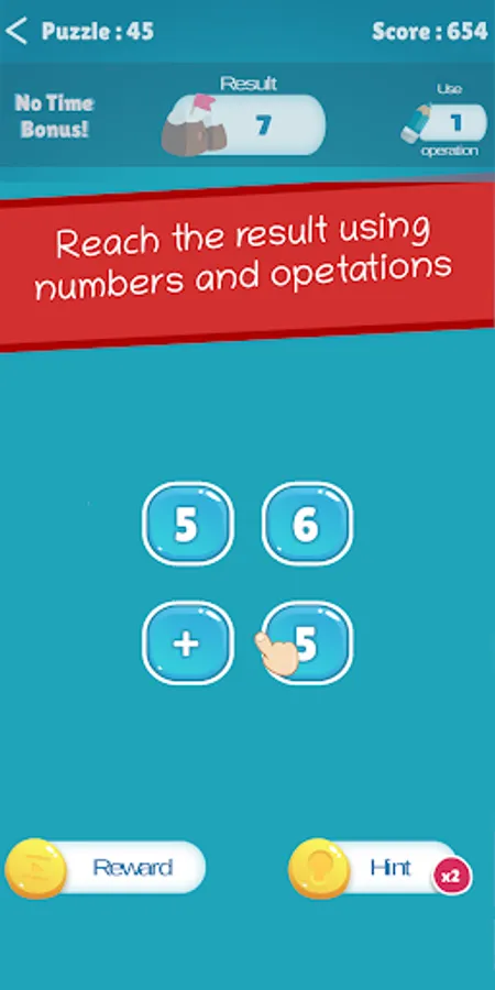 Target number is given on top, and you should swipe your finger across the numbers and three basic mathematical operations -addition, subtraction and multiplication- to reach the target number. You will earn extra points, if you find an operation that results with the target number before given time expires.