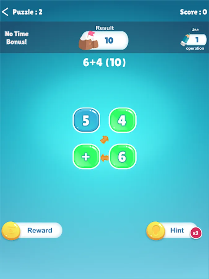 The aim is to REACH TARGET number with mathematical operations in the puzzle and collect points.
