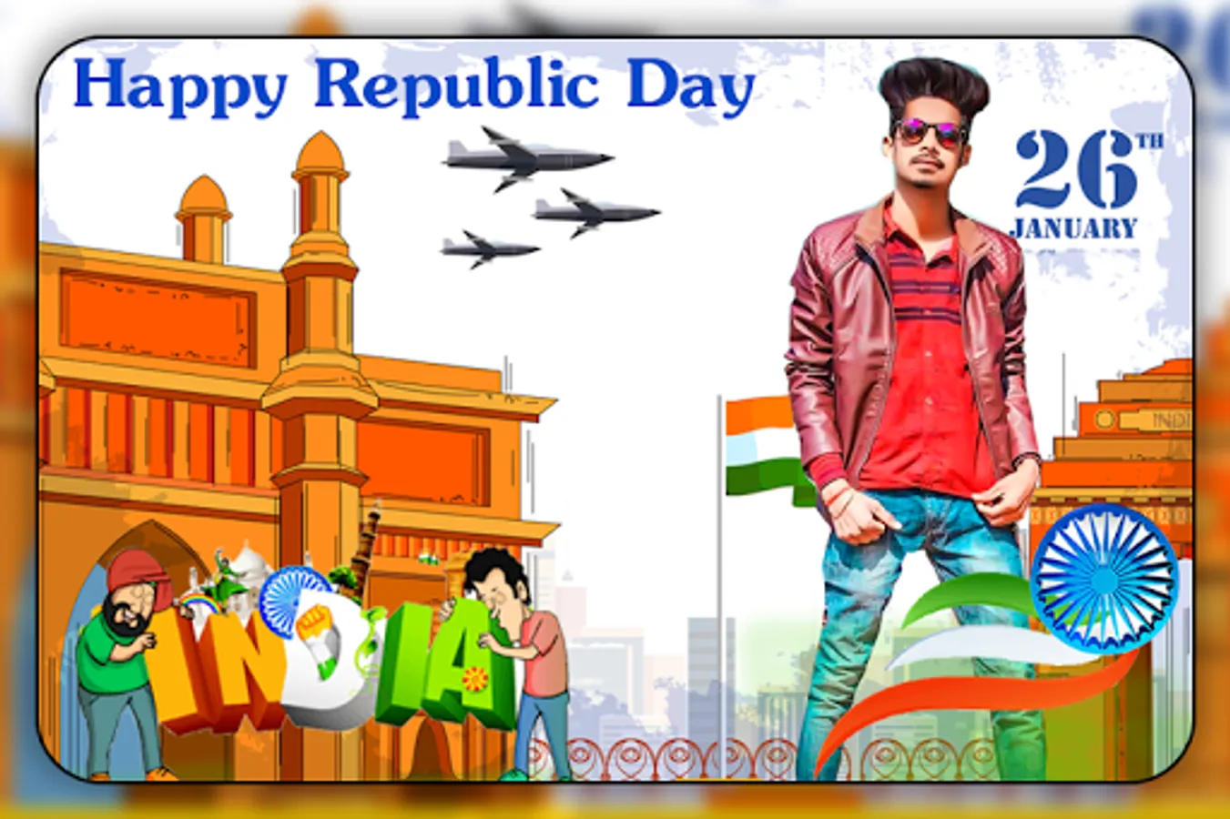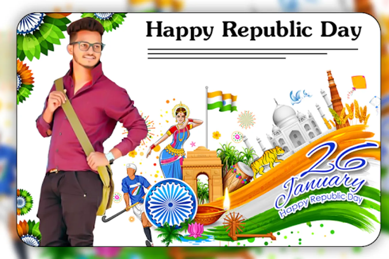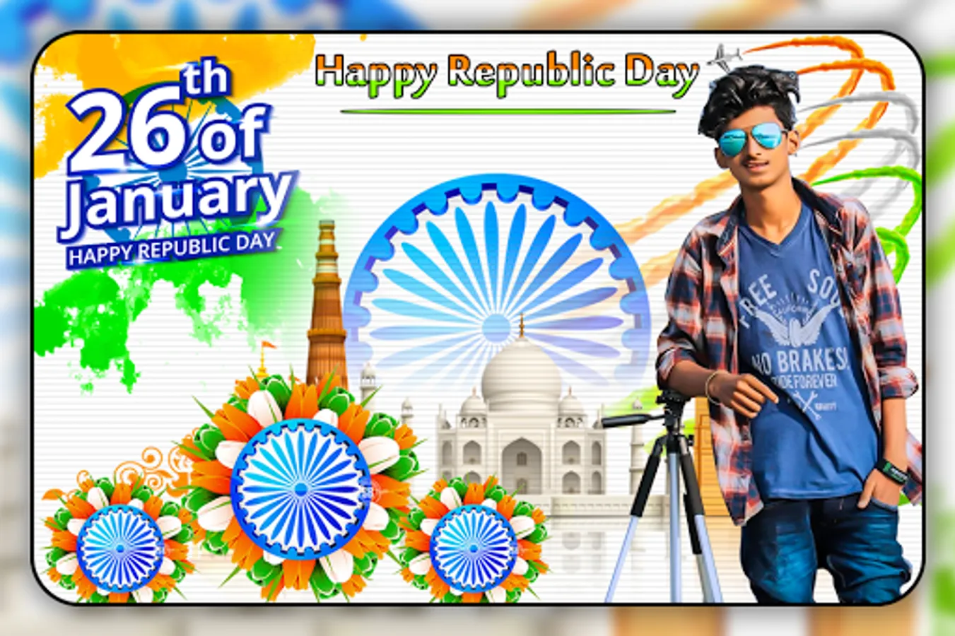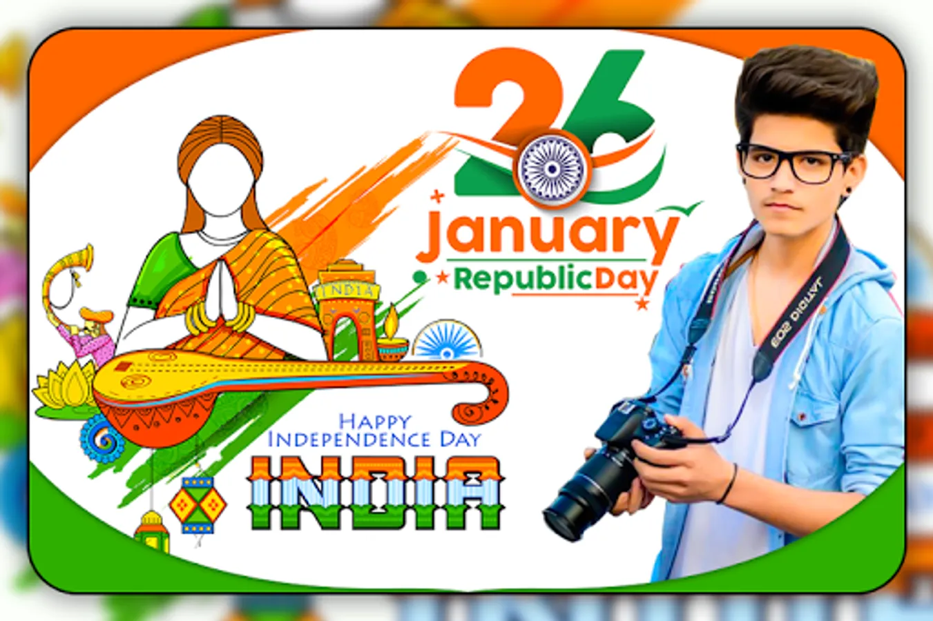 Have this photo frames app and give to your photos awesome look with Republic day photo frames. Your pictures will be perfect with these fantastic 26 January photo frames.
