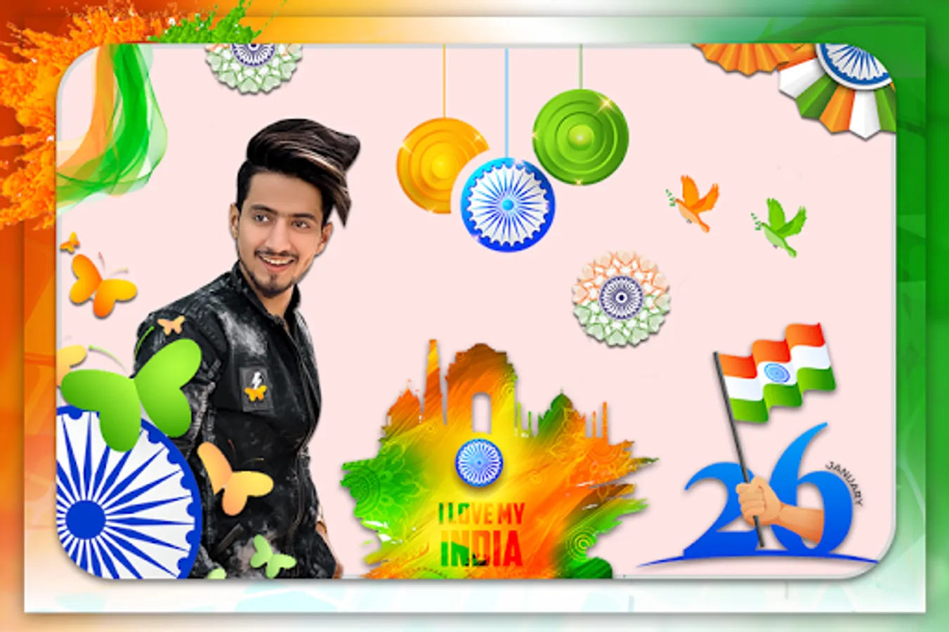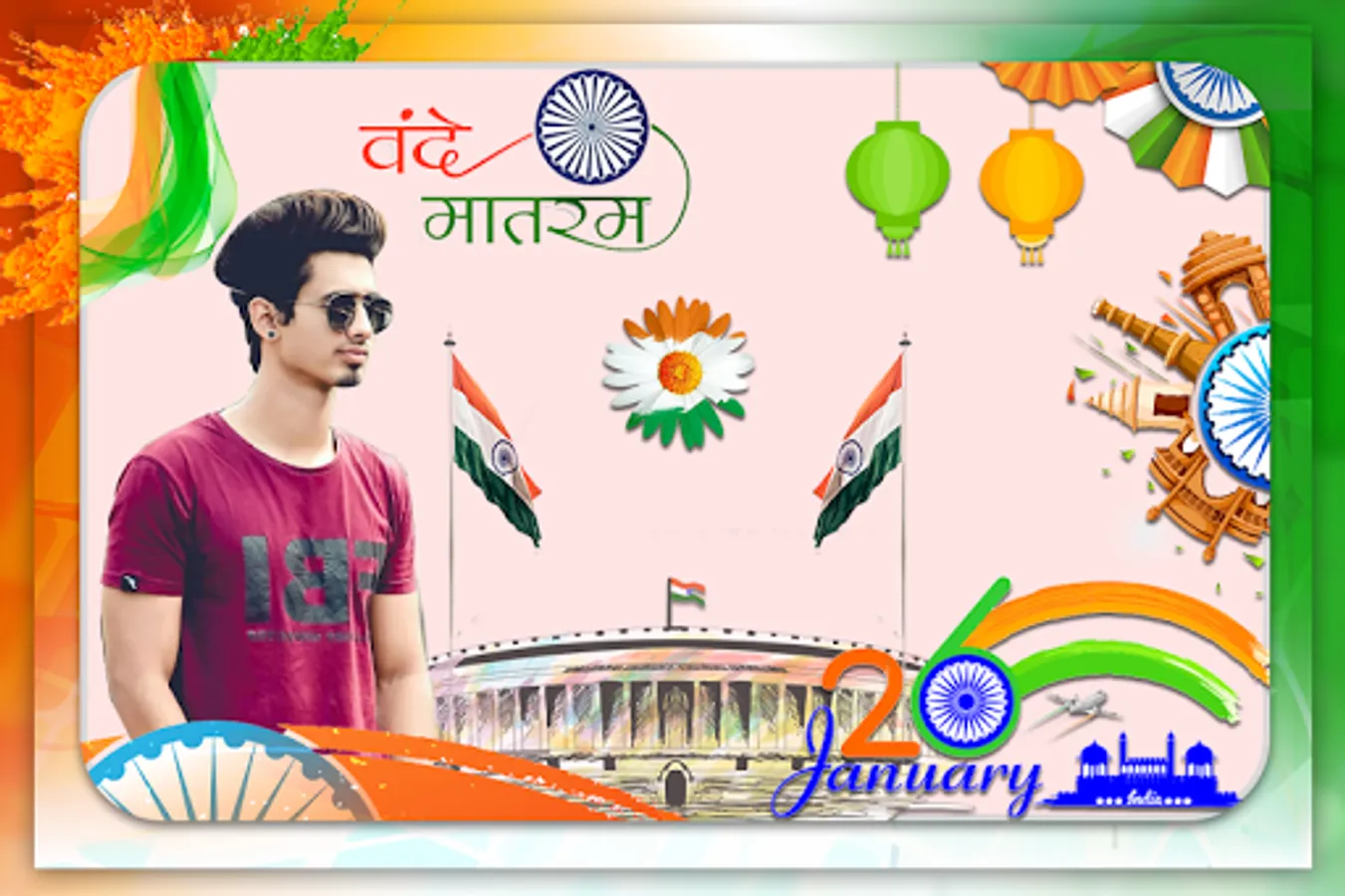Have this photo frames app and give to your photos awesome look with Republic day photo frames. Your pictures will be perfect with these fantastic 26 January photo frames.